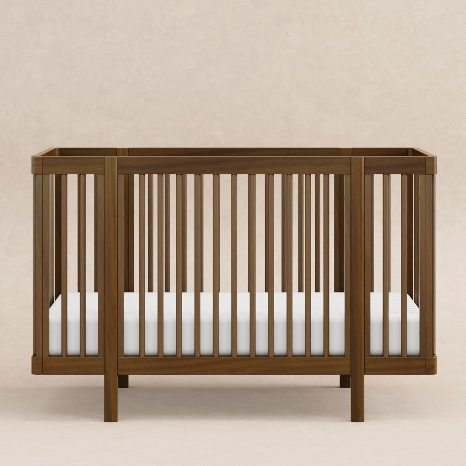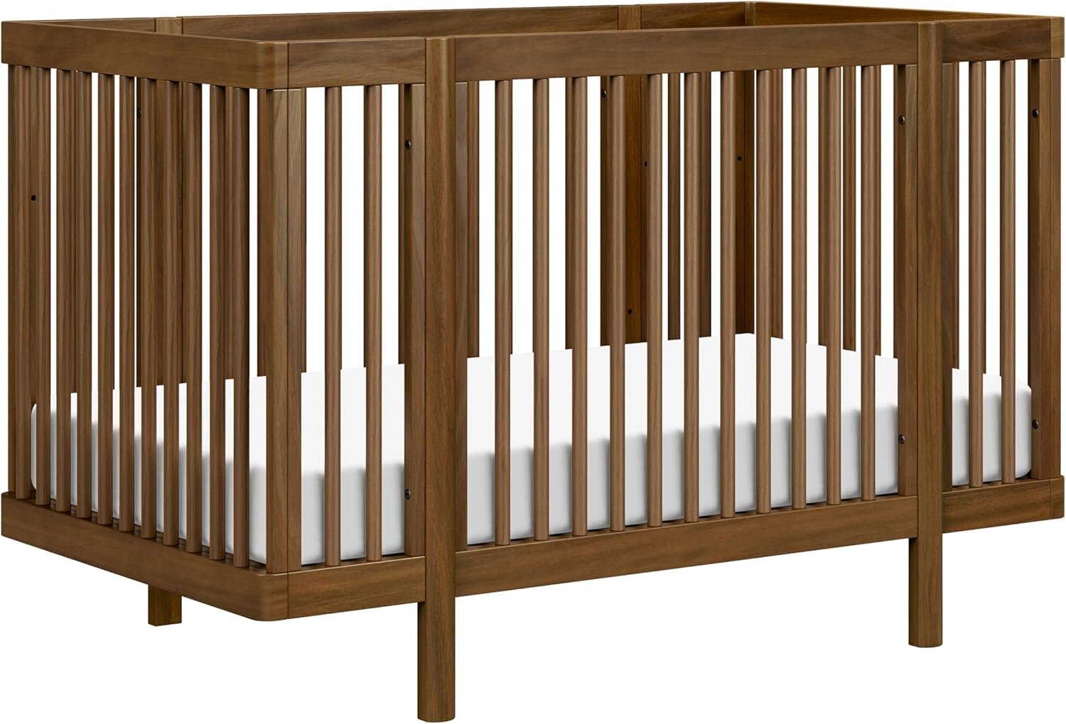 Pogo 8-in-1 All-Stages Crib features gently curved corners & rounded spindles. Convert from bassinet to a transitional midi size, and then to standard crib or junior bed. Choose from two mattress heights & configurations in each size. All conversion kits included