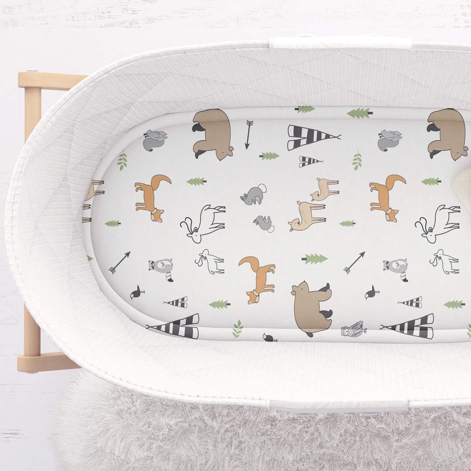 SKIP THE BAWLING & LET THIS bunny-soft woodland animals cradle sheet lull your baby to sleep. Crafted from 100% Jersey Cotton, mom’s who switch to this bassinet fitted sheet say they notice a major difference in how quickly baby falls asleep, how peacefully they stay asleep, and how joyfully they awake.