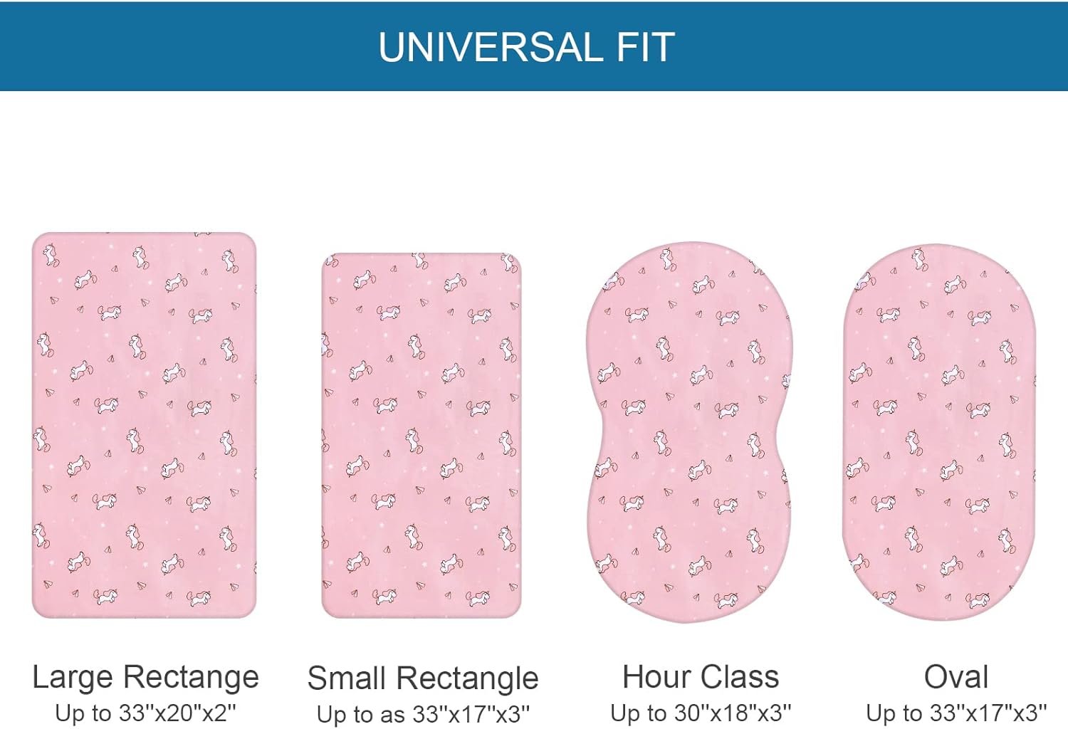 Flexible Fit: Our stretchy bassinet sheet 33″ x 17″ (up to 33″ x 20″) with an elasticated hem fit almost all standard oval, round, rectangle, hourglass shaped bassinet mattress, also fit most standard bassinet cradle mattress. There are designed to fit most standard rectangle bassinet mattress like Mika Micky Bedside Sleeper/Baby Delight Beside Me Dreamer Bassinet/Dream On Me Waves 3-in-1 Baby Bassinet/AMKE 3 in 1 Baby Bassinet/ANGELBLISS Baby Bassinet Bedside Crib and other rectangle bassinet mattress. To ensure the perfect fit, we recommend you can refer to our pictures for the applicable sizes.