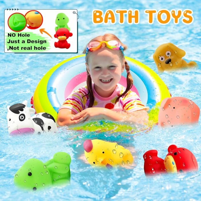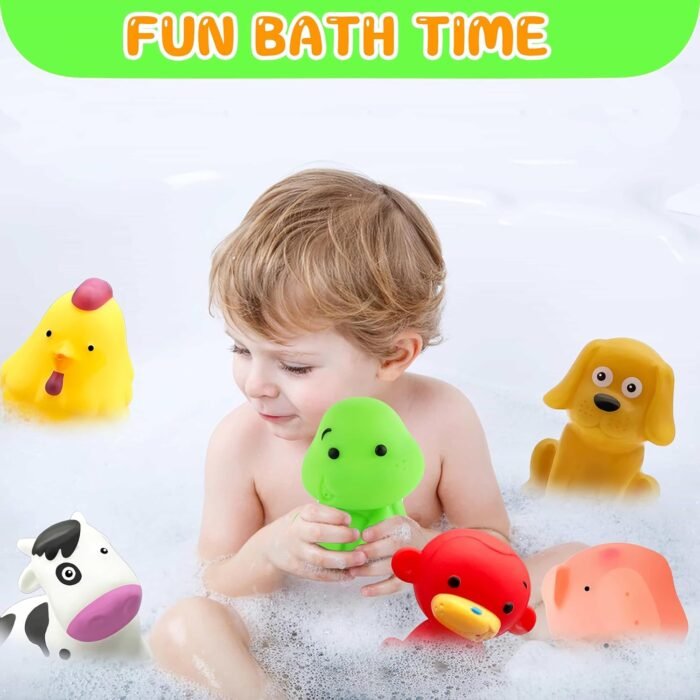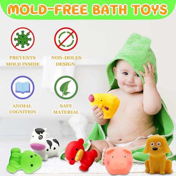 【Mold-Free & Safe】Our toddler bath toys are completely sealed with food-grade epoxy glue, ensuring no water gets in. Made of organic rubber, free from BPA, PVC, or Phthalates, our toys are safe for your little ones.let your baby enjoy the bathing time without concern.