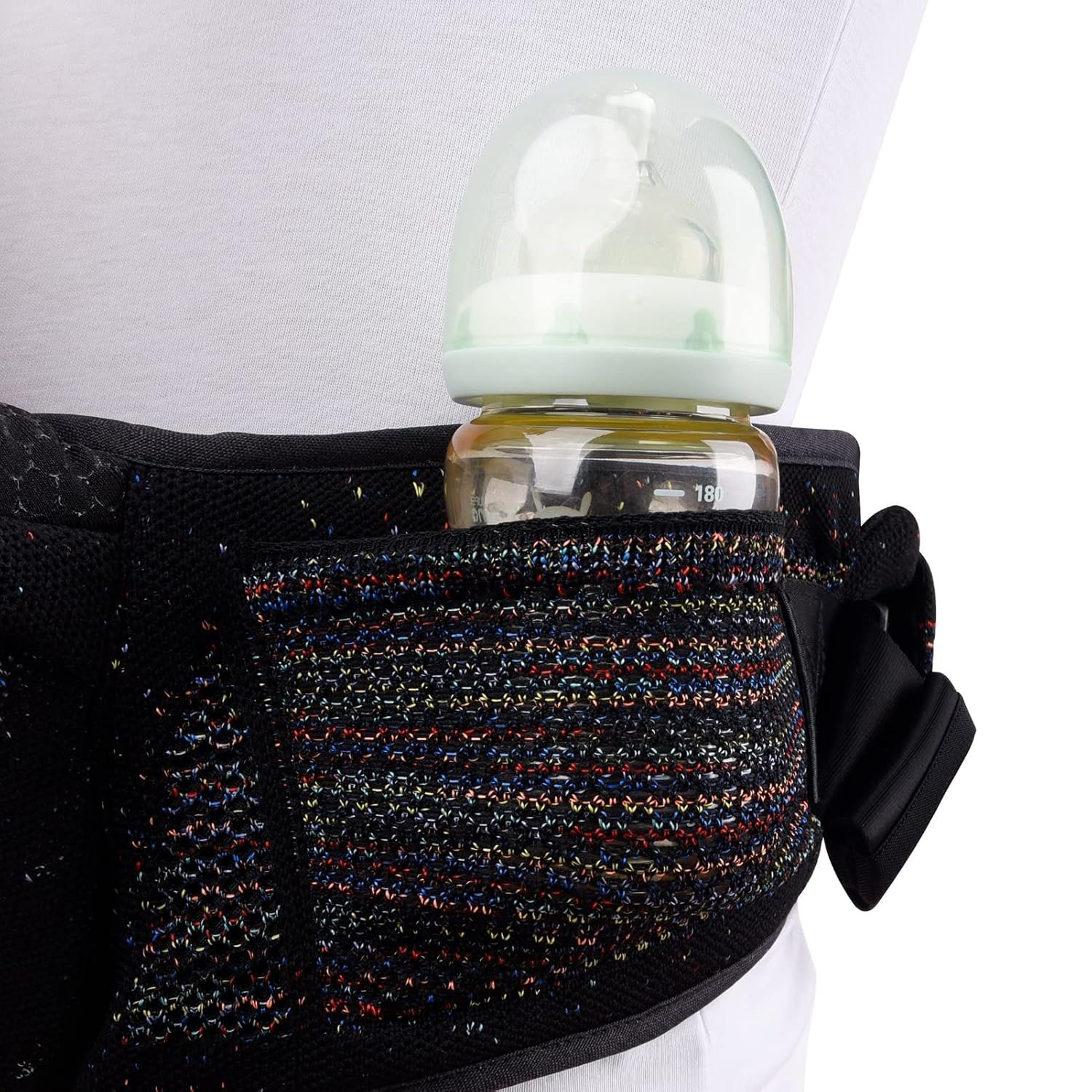 【Intimated Designed】Attached baby bibs are removable. There are 2 zipper pocket & 1 slip pocket on the belt of baby carrier can put some small things when you go out with your baby. It is very convenient design.