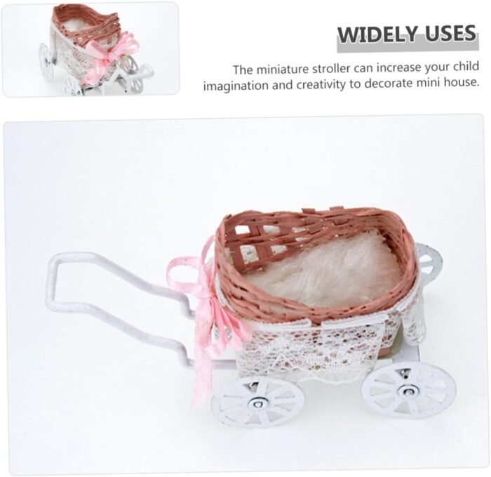 Miniature stroller for dolls:the miniature stroller can increase your imagination and creativity to decorate mini house,mini stroller