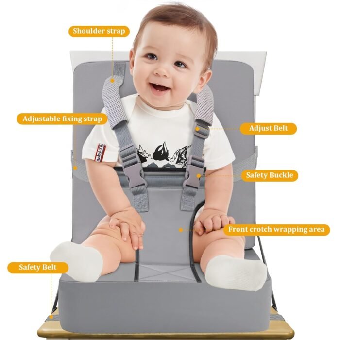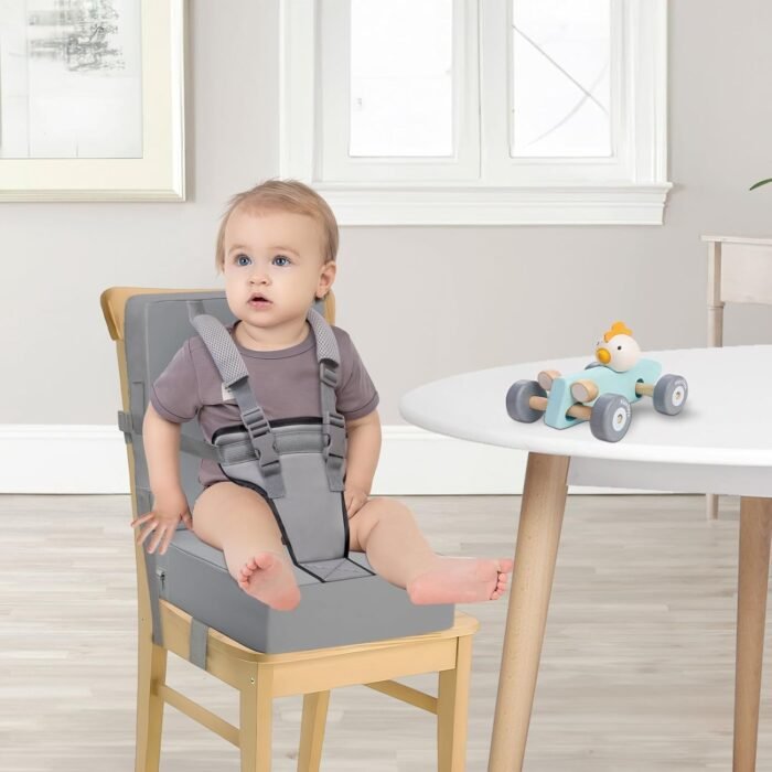 A GOOD CHOICE for MEALING: Booster seat for kitchen chair with harness Seat Straps offer flexibility for toddlers who do not like sit in a crowded highchair. It also offers parents the flexibility they need without compromising on their child’s safety. They are designed for children aged 1-5 years old and can be easily adjusted to accommodate growing kids. They can be effortlessly attached and detached as needed, making toddlers convenient for having meal with family like yours
