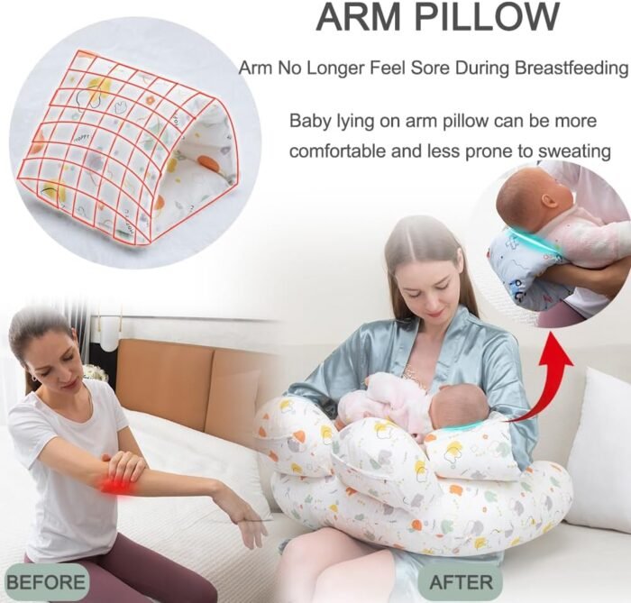 Arm Pillow: Slip your arm through the separate smaller pillow for a secure fit that provides extra support and comfort for your baby during breastfeeding or bottle feeding