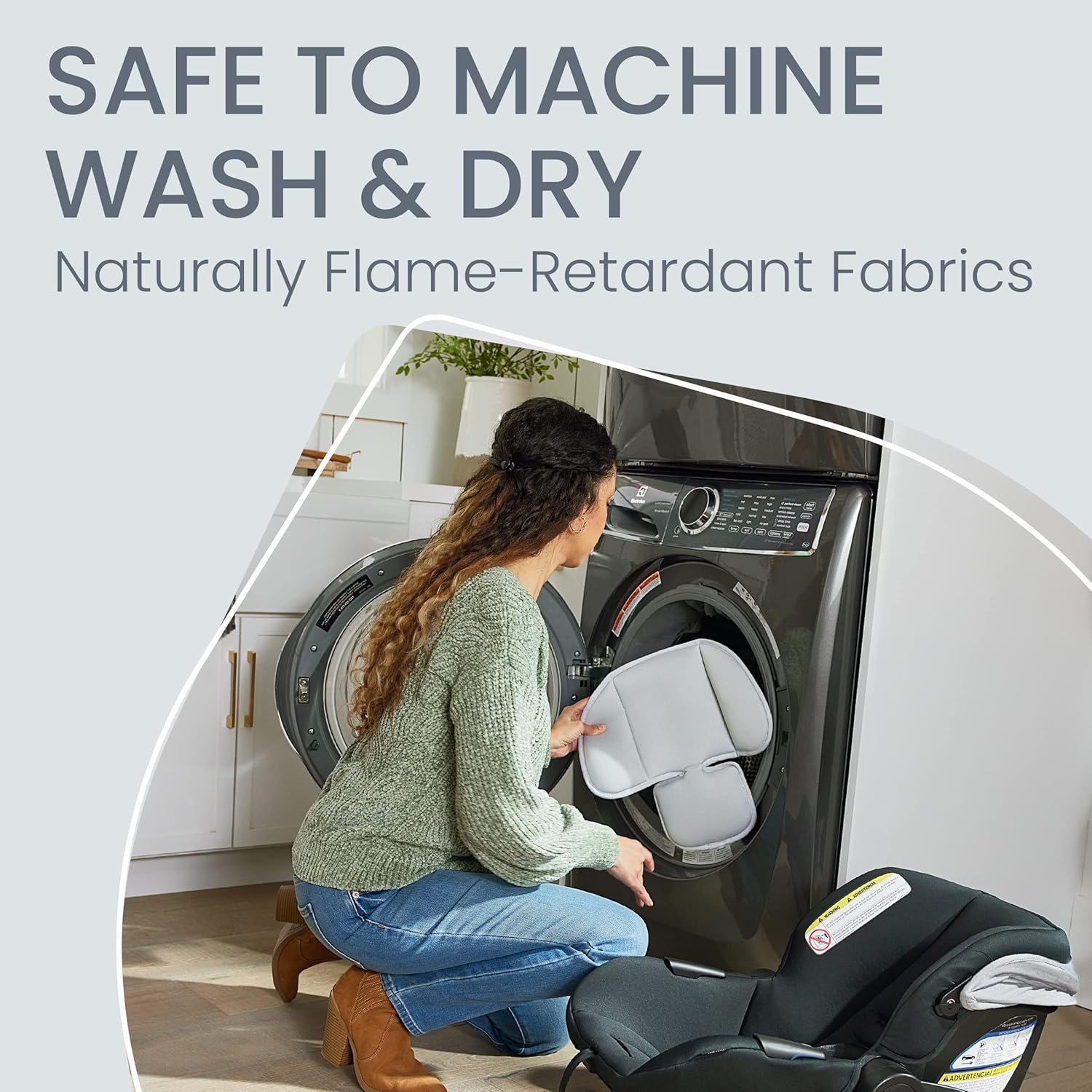 WASHER AND DRYER FRIENDLY: The SafeWash car seat cover and stroller insert only are naturally flame-retardant and safe to machine wash and dry