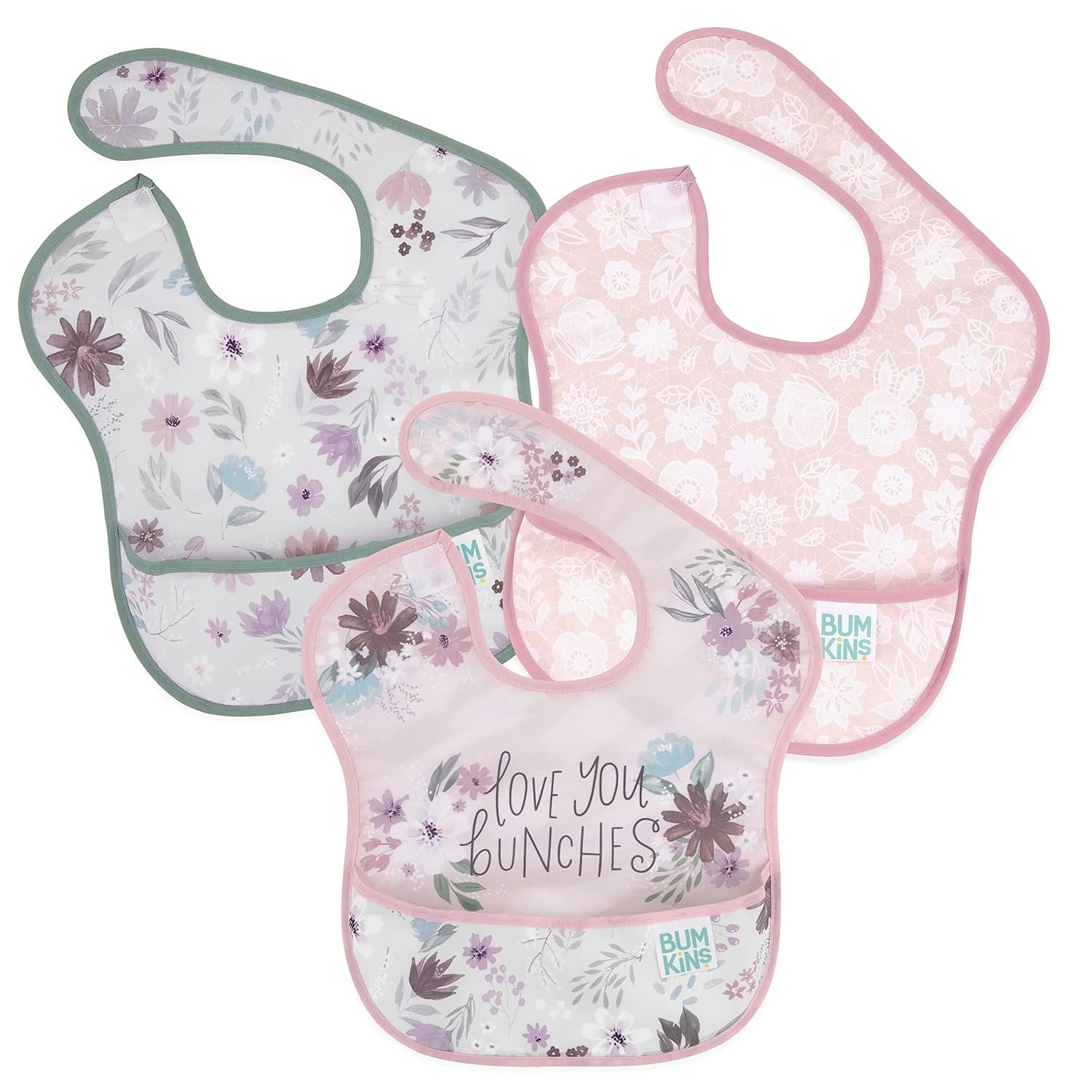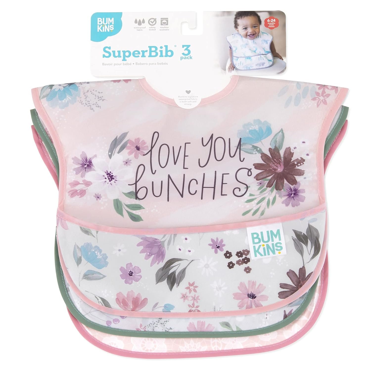 The Bumkins SuperBib baby bib saves you from the feeding mess! Perfect for little eaters transitioning from purees to soft foods and solids during baby led weaning. Bibs attach over the back of the shoulder with hook and loop for a quick, adjustable and tug-proof fit. With a handy crumb catcher / catch-all pocket for containing spills. Made from Bumkins lightweight, waterproof and easy-wipe fabric. Machine washable for easy cleaning so you can use it over and over again. We use third party labs to ensure the products we manufacture comply with CPSC and CPSIA standards for BPA, Lead, and Phthalates. Sized to fit babies and toddlers ages 6 to 24 months. Measures approximately 10” across and 9” from neck down.