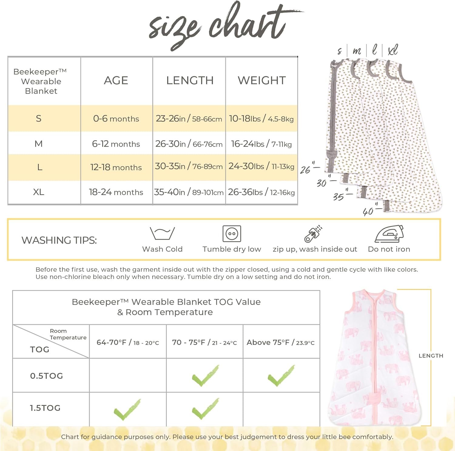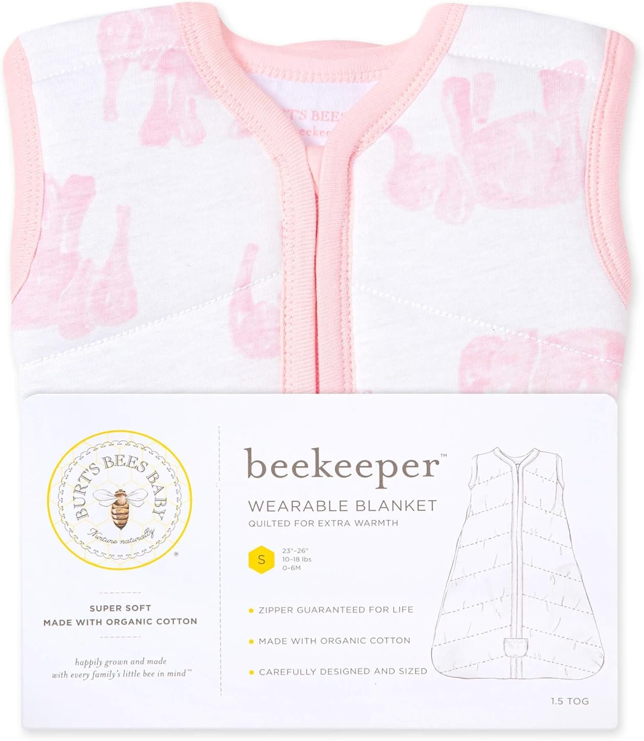 Burt’s Bees Baby, Sustainably Made for Life’s Greatest Joy. Embrace Your Little Bee’s Special Moments with Burt’s Bees Baby Beekeeper. Designed for your little bee’s early stages, our Beekeeper wearable blanket offers the perfect blend of comfort, safety, and convenience. From the soft embrace of 100% organic cotton to the thoughtful safety features like the interior zipper guard, every detail is crafted with your baby’s well-being in mind. The convenient and easy-to-use zipper closures make diaper changes hassle-free. Our Beekeepers feature adorable and timeless watercolor prints and colors that are suitable for both baby boys and girls. Ideal for newborns, infants, and toddlers, our wearable blanket is a versatile companion through various milestones—from offering a swaddling alternative for your newborn to providing a secure sleeping environment for your 7-month-old. Available in a range of sizes to accommodate your growing baby: sizes Small, Medium, Large and Extra Large. Our Beekeeper wearable blankets are available in 2 fabric weights: lightweight (0.5 TOG) so your little bee rests comfortably, and medium weight (1.5 TOG) so your little bee stays nice and warm. Whether you’re preparing for your newborn’s arrival or transitioning your baby to a more freeing sleepwear option, our Beekeeper wearable blanket offers the softness, safety, and convenience you’ve been looking for. It is the ultimate sleep solution that caters to every baby’s needs and a must-have for every nursery. Make every night a peaceful journey to dreamland with Burt’s Bees Baby Beekeeper, where your baby’s comfort is our priority.