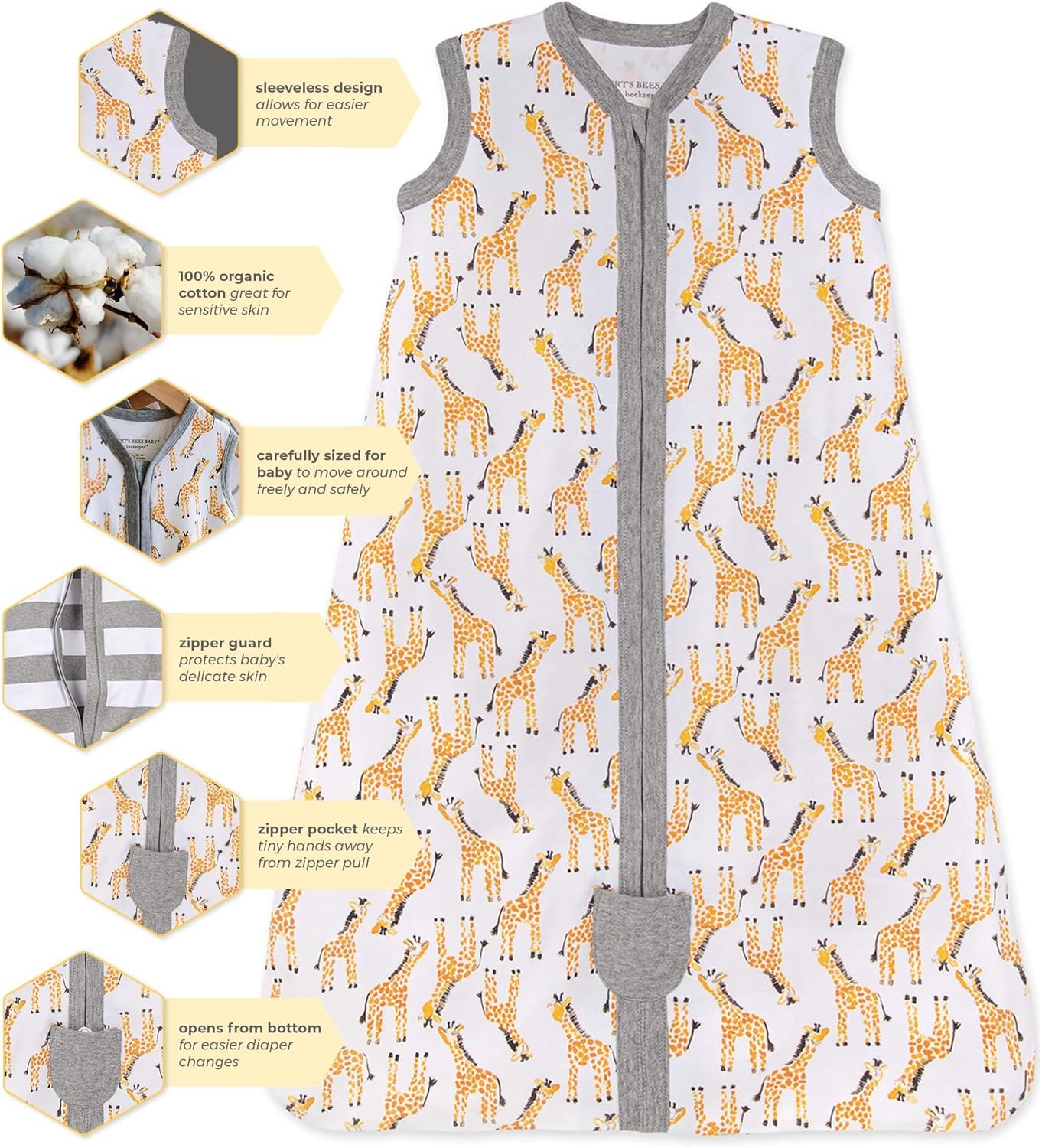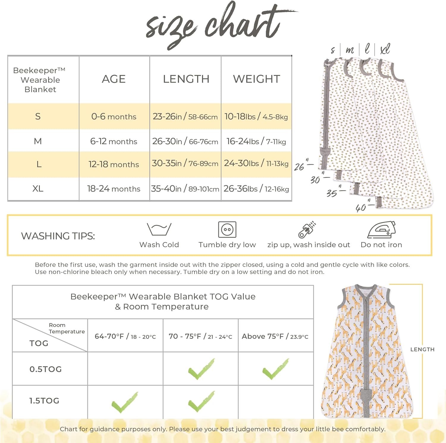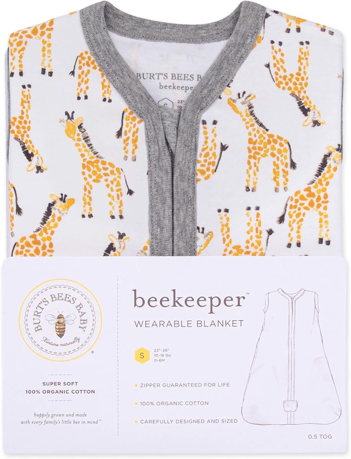 Burt’s Bees Baby, Sustainably Made for Life’s Greatest Joy. Embrace Your Little Bee’s Special Moments with Burt’s Bees Baby Beekeeper. Designed for your little bee’s early stages, our Beekeeper wearable blanket offers the perfect blend of comfort, safety, and convenience. From the soft embrace of 100% organic cotton to the thoughtful safety features like the interior zipper guard, every detail is crafted with your baby’s well-being in mind. The convenient and easy-to-use zipper closures make diaper changes hassle-free. Our Beekeepers feature adorable and timeless watercolor prints and colors that are suitable for both baby boys and girls. Ideal for newborns, infants, and toddlers, our wearable blanket is a versatile companion through various milestones—from offering a swaddling alternative for your newborn to providing a secure sleeping environment for your 7-month-old. Available in a range of sizes to accommodate your growing baby: sizes Small, Medium, Large and Extra Large. Our Beekeeper wearable blankets are available in 2 fabric weights: lightweight (0.5 TOG) so your little bee rests comfortably, and medium weight (1.5 TOG) so your little bee stays nice and warm. Whether you’re preparing for your newborn’s arrival or transitioning your baby to a more freeing sleepwear option, our Beekeeper wearable blanket offers the softness, safety, and convenience you’ve been looking for. It is the ultimate sleep solution that caters to every baby’s needs and a must-have for every nursery. Make every night a peaceful journey to dreamland with Burt’s Bees Baby Beekeeper, where your baby’s comfort is our priority.