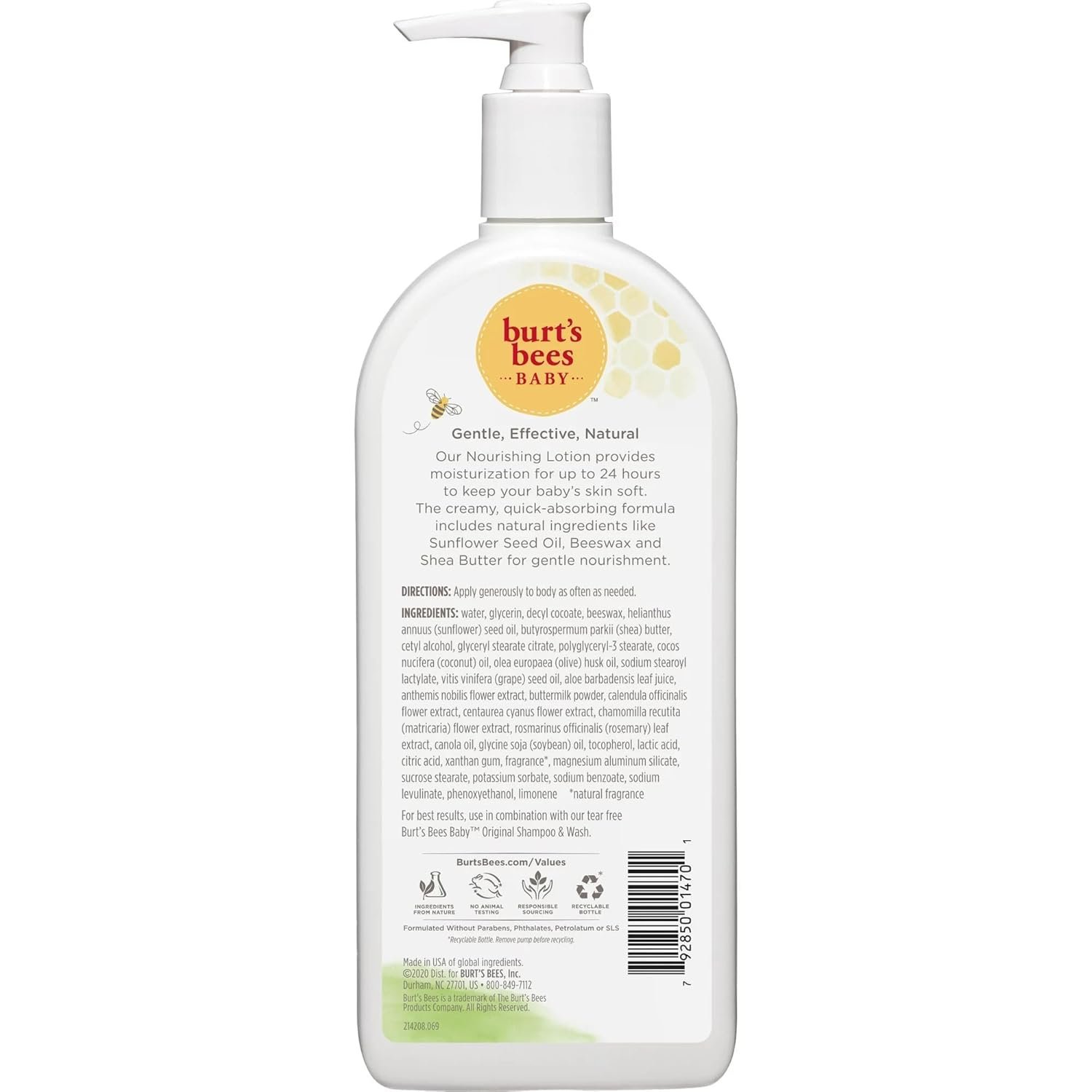 Burt’s Bees Baby Bee Nourishing Calming Lotion is specially formulated to gently nourish and soothe your baby’s delicate skin. Enriched with natural ingredients like aloe, shea butter, and lavender, this lotion provides long-lasting hydration and a calming effect, perfect for bedtime routines. Its hypoallergenic formula ensures it’s safe for daily use on sensitive skin, helping to keep your baby’s skin soft, smooth, and healthy.