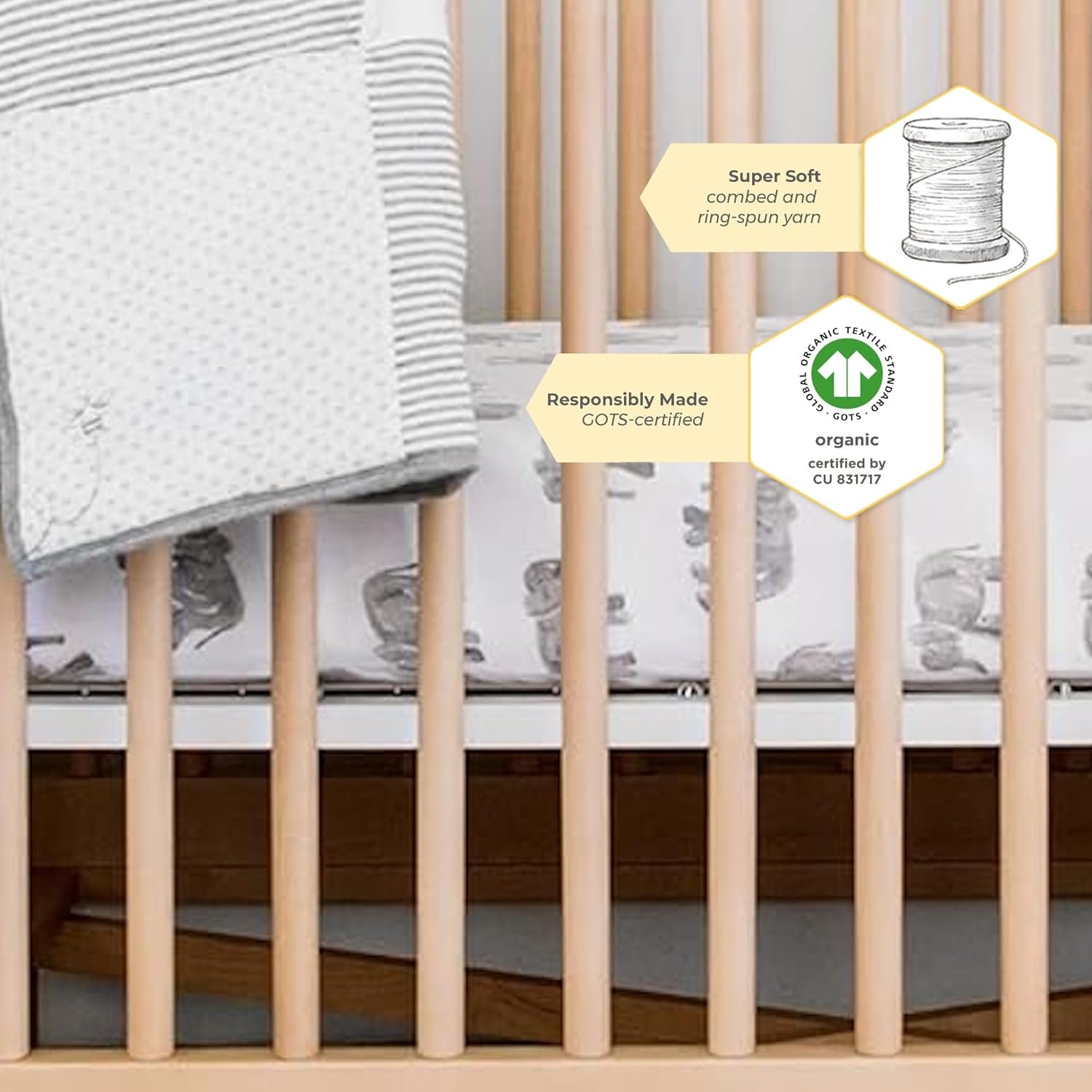 Material Quality: Burt’s Bees Baby offers a range of organic crib sheets. These cotton sheets are made from premium materials that are gentle on your little bees’ skin. They make a great registry item or gift for any season or occasion.