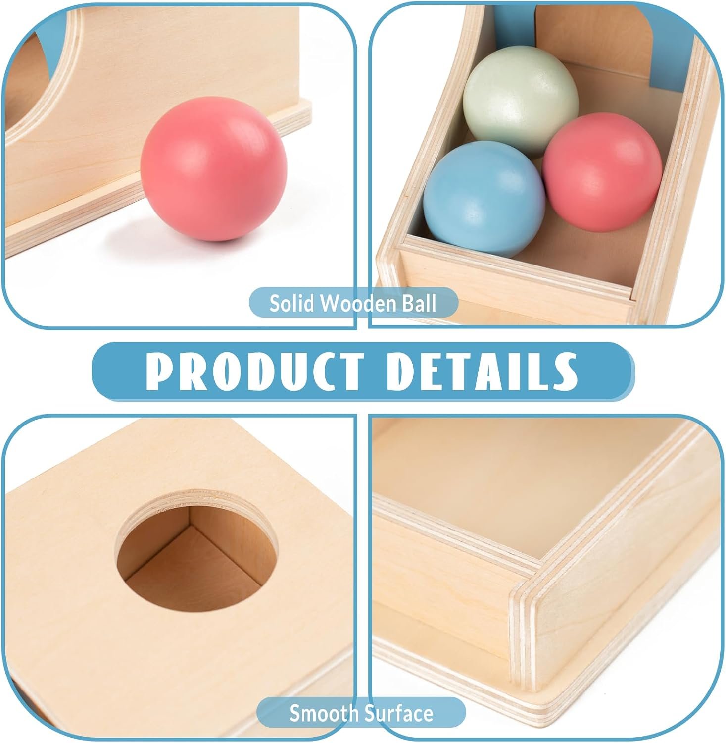 Promotes Cognitive Development: The Montessori Object Permanence Box (containing three balls with a diameter of 1.77 inches) is a high-quality learning tool specifically designed for infants aged 6 to 12 months, aimed at fostering cognitive development. By demonstrating the concept of object permanence, it helps infants understand that objects continue to exist even when they are out of sight.