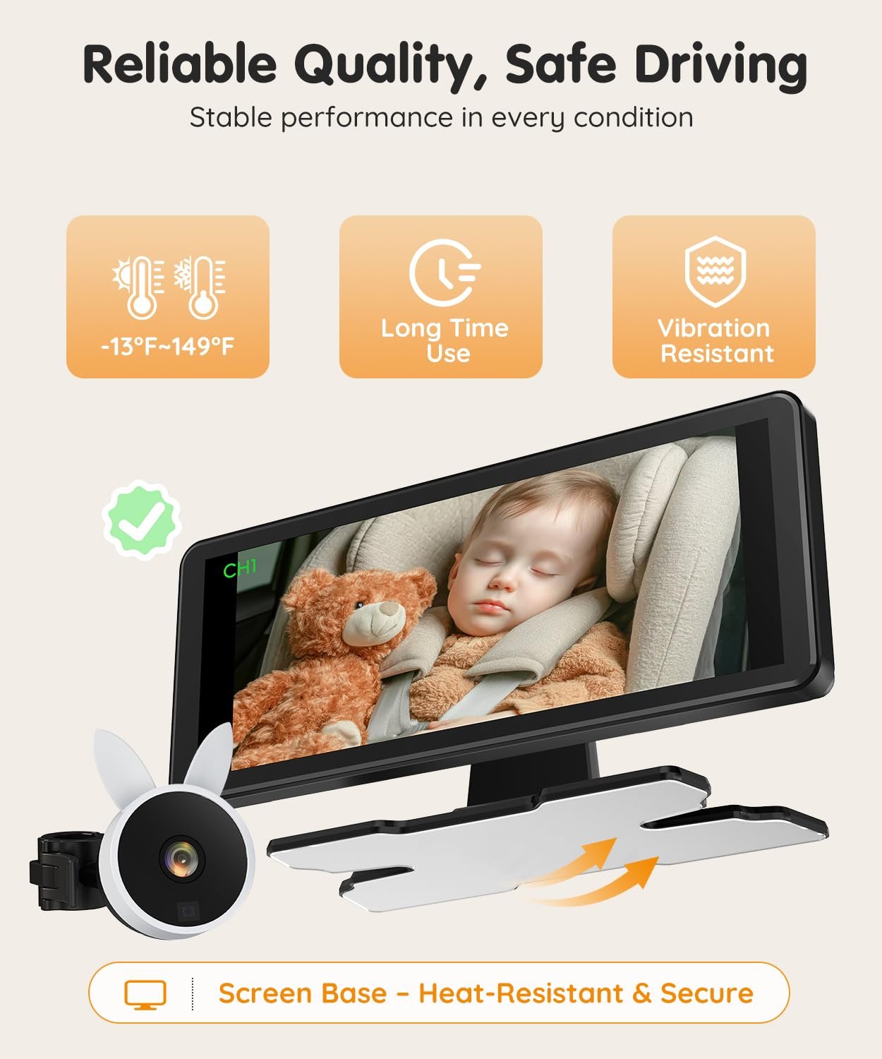 𝟭𝟴 𝗠𝗼𝗻𝘁𝗵 𝗪𝗮𝗿𝗿𝗮𝗻𝘁𝘆 & 𝗖𝘂𝘀𝘁𝗼𝗺𝗲𝗿 𝗦𝘂𝗽𝗽𝗼𝗿𝘁: Enjoy a full one-year warranty on your dual car camera baby monitor, along with professional customer support. Drive with confidence knowing we’ve got you and your children covered on every journey — the go-to baby car camera for peace of mind.