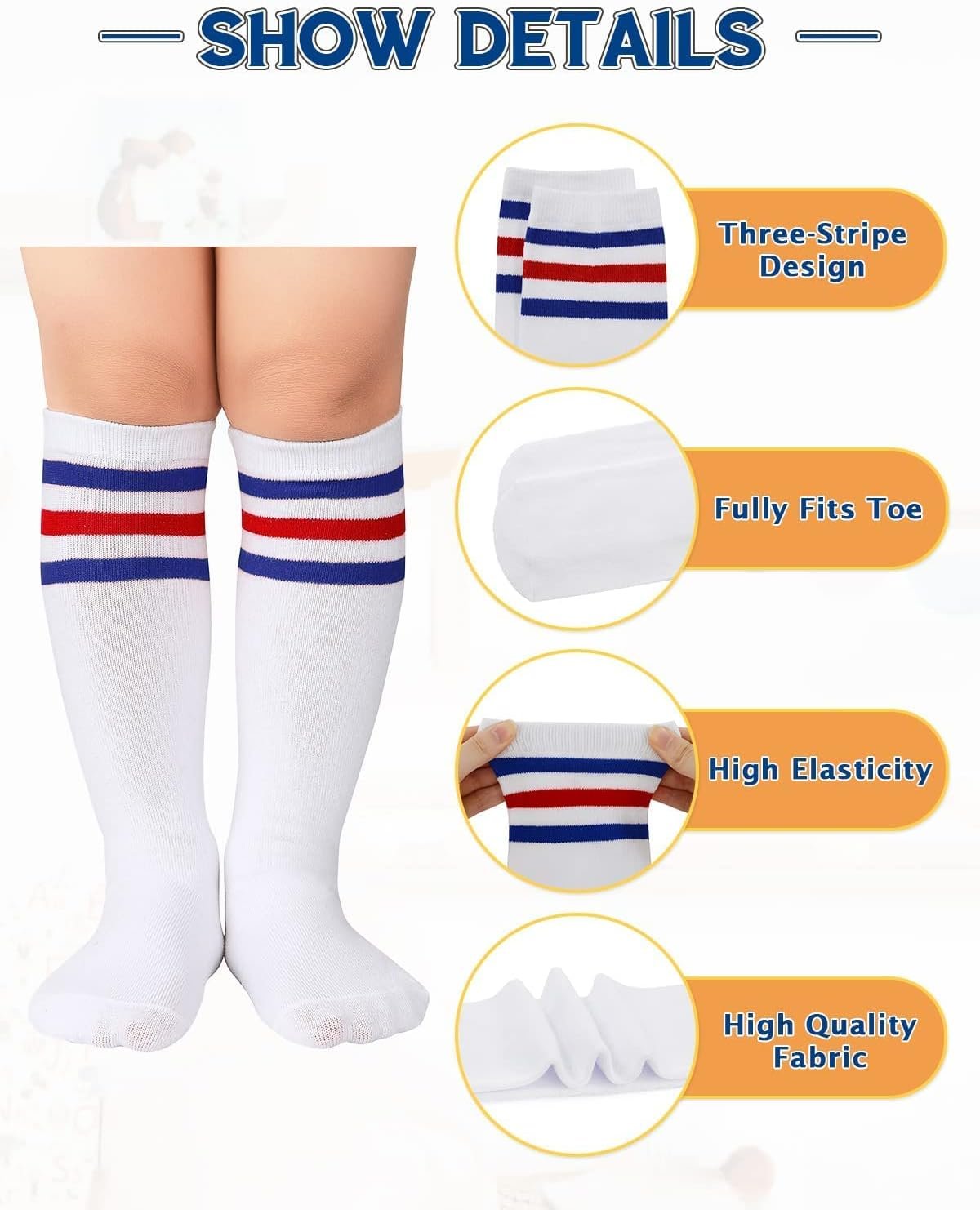 Feature: Toddler socks with three striped at the top, classic and stylish, easily matched with various uniforms, shorts.