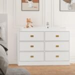 【Modern and Elegant Design】 your space with this changing table dresser featuring gold handles, exuding a chic and refreshing aesthetic that effortlessly blends into any room, from bedrooms to offices. This versatile piece serves as a clothing organizer, vanity, or storage cabinet, elevating your decor with a sleek modern touch.