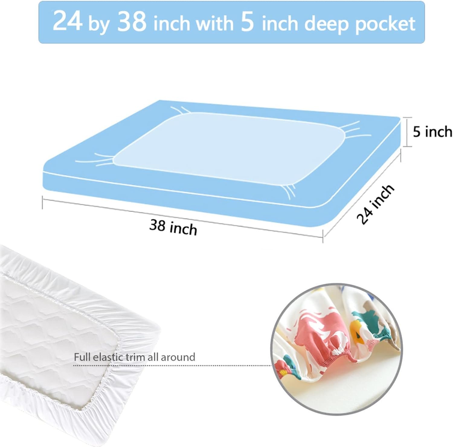 We are the softest and most comfortable fabric, very soft, lightweight, breathable, stretchy to create a comfortable sleeping area for your little angel. This sheet includes sheets that Fitted Mini Crib or baby mattress (38″ x 24″) with 5″ deep pockets and premium elastic band all around so it stays secure and snug on the mattress. It’s easier to remove too,Our products make great gifts for moms, machine washable easy care and no deformation occurs after washing. Wash before first use.Perfect baby shower gift and the best gift for girls or boys, I am sure you will love it.
