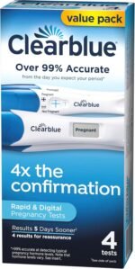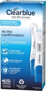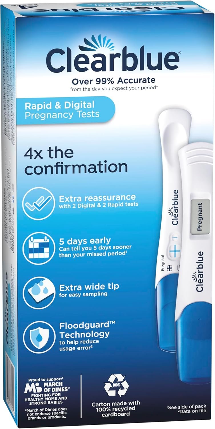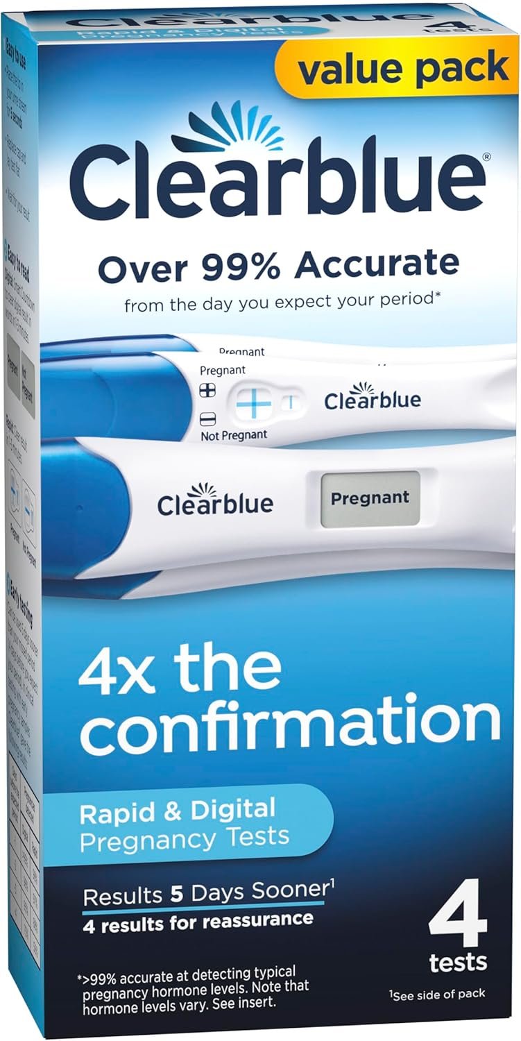 Two Clearblue Digital Pregnancy Test with Smart Countdown, and two Clearblue Rapid Detection Pregnancy Test included