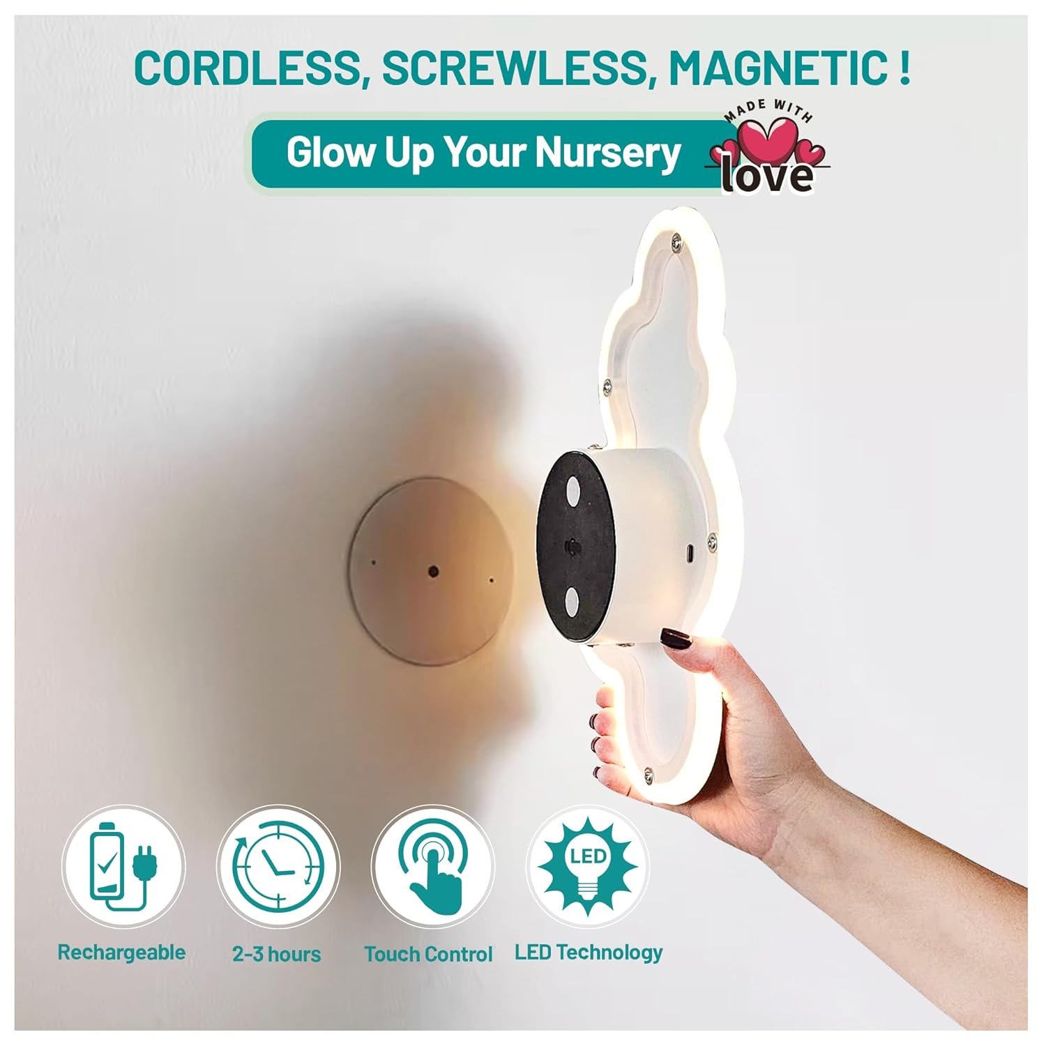 TOOL-FREE INSTALLATION : This night light for kids has a magnetic mount for easy setup, adding ambient lighting to baby nursery decor. It’s perfect as a wall decor for bedroom, girls night light.