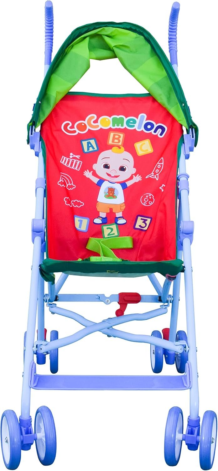 Make the day more fun with JJ! This adorable CoComelon Stroller is inspired by the nursery rhymes from the educational YouTube series, CoComelon. Designed with ease and safety in mind, this stroller is perfect for on-the-go fun. The lightweight frame folds compact for easy storage. The perfect stroller to take with you anywhere! The durable tires offer a smooth ride, while the rear wheels have toe tap locking brakes to keep the stroller in place when parked. Equipped with a three-point safety belt and removable canopy, kids will be ready to ride in style with the CoComelon Stroller!