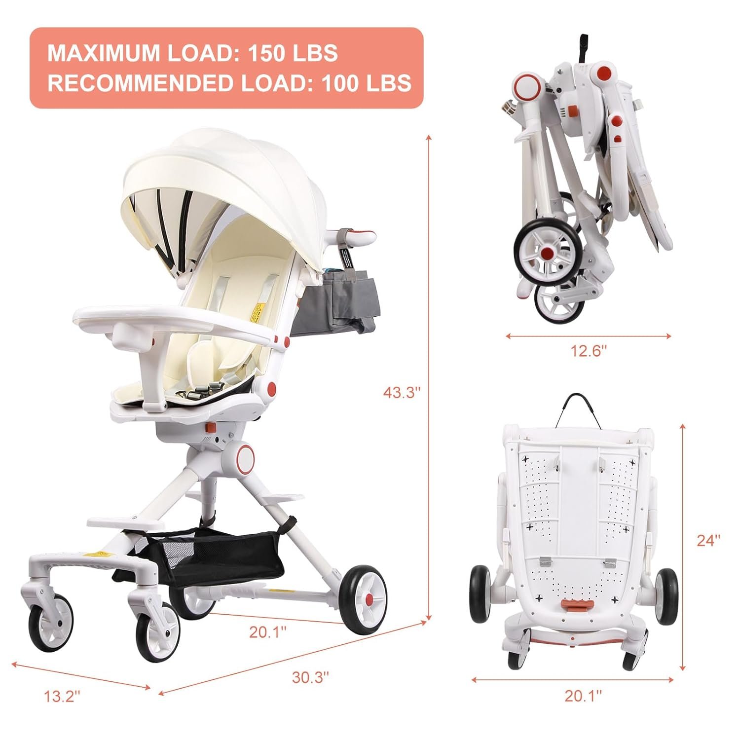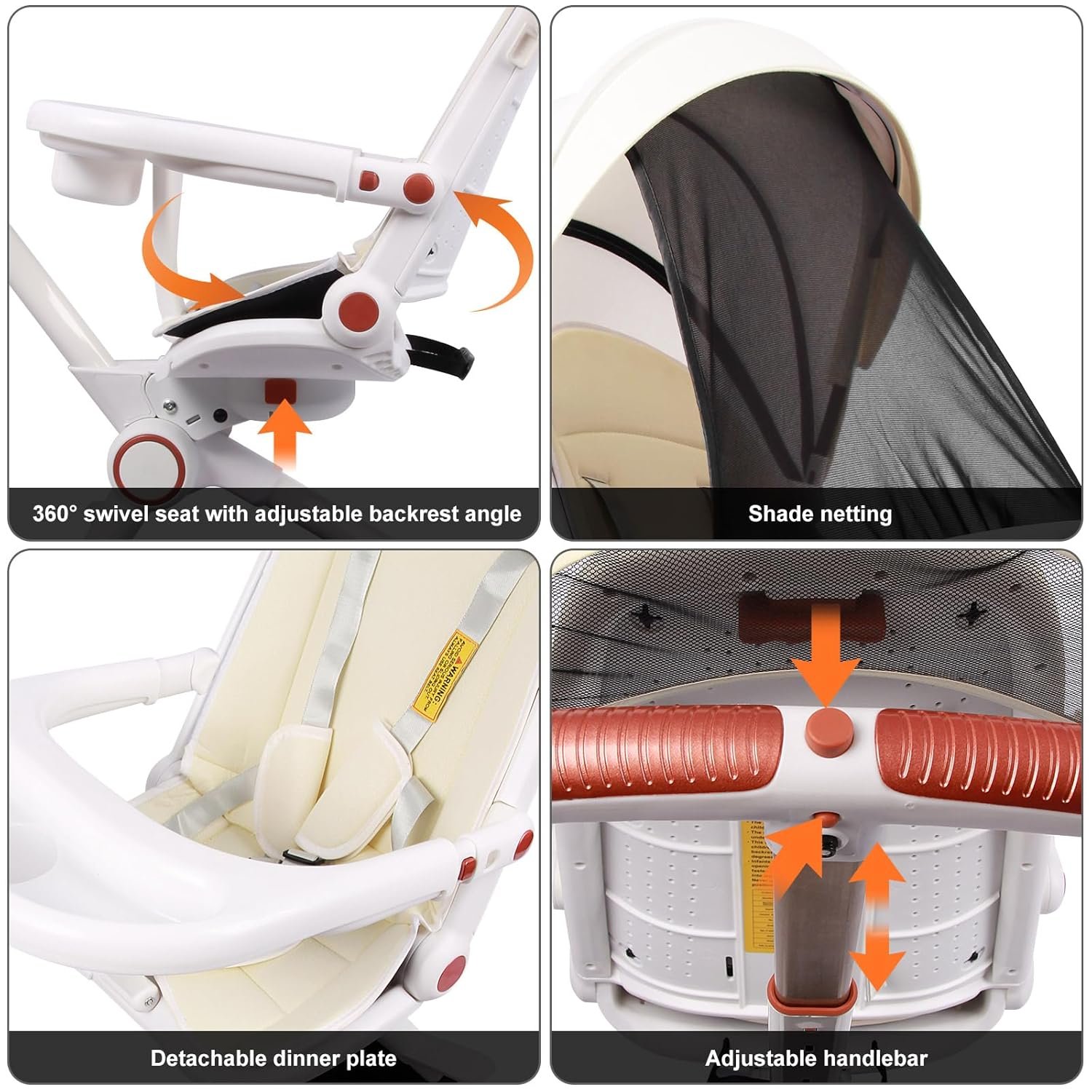 The best part? The sunshade comes with an extra foldable sunshade net underneath and the seat has a removable meal tray.