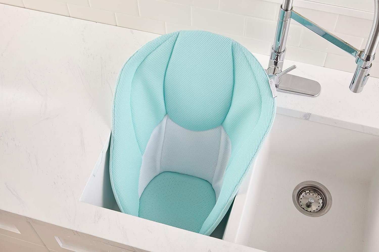 SOFT COMFORT: Comprised of breathable, 3D mesh fabric, the Contours Cozy Baby Bather creates a plush newborn bath for baby with its soft, safe design that is PVC-free, BPA-free, and Latex-free