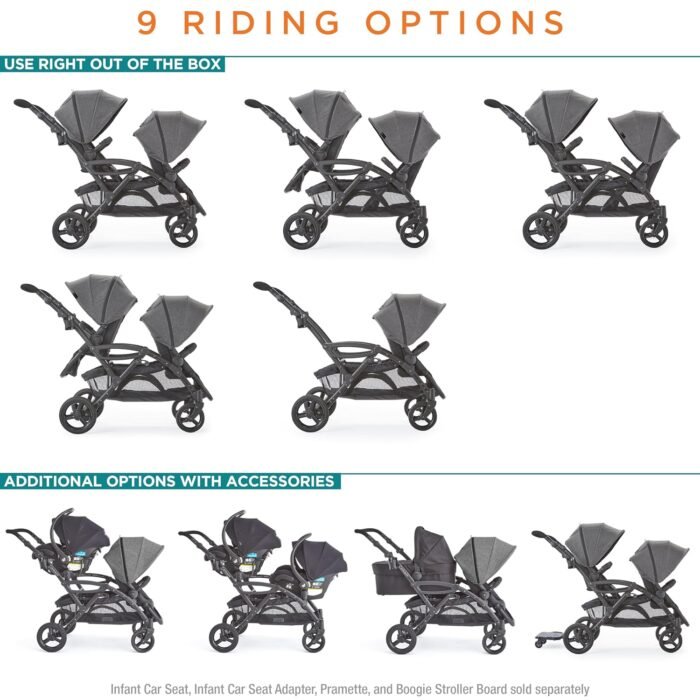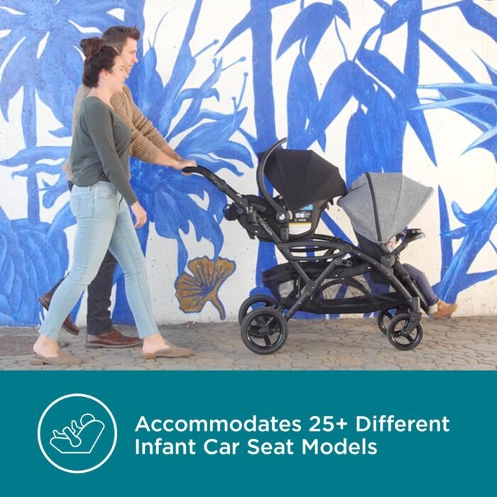 PERFECT FOR INFANTS AND TODDLERS: Accommodates two toddlers or an infant and toddler. Easily accommodates up to two infant car seats to create a complete travel system for twins; car seats adapters sold separately.