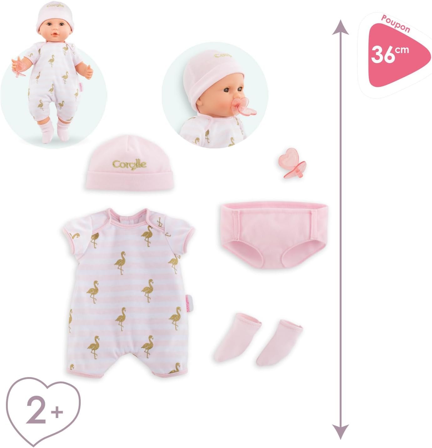 Designed to fit 14-inch Corolle BeBe dolls – sold separately
