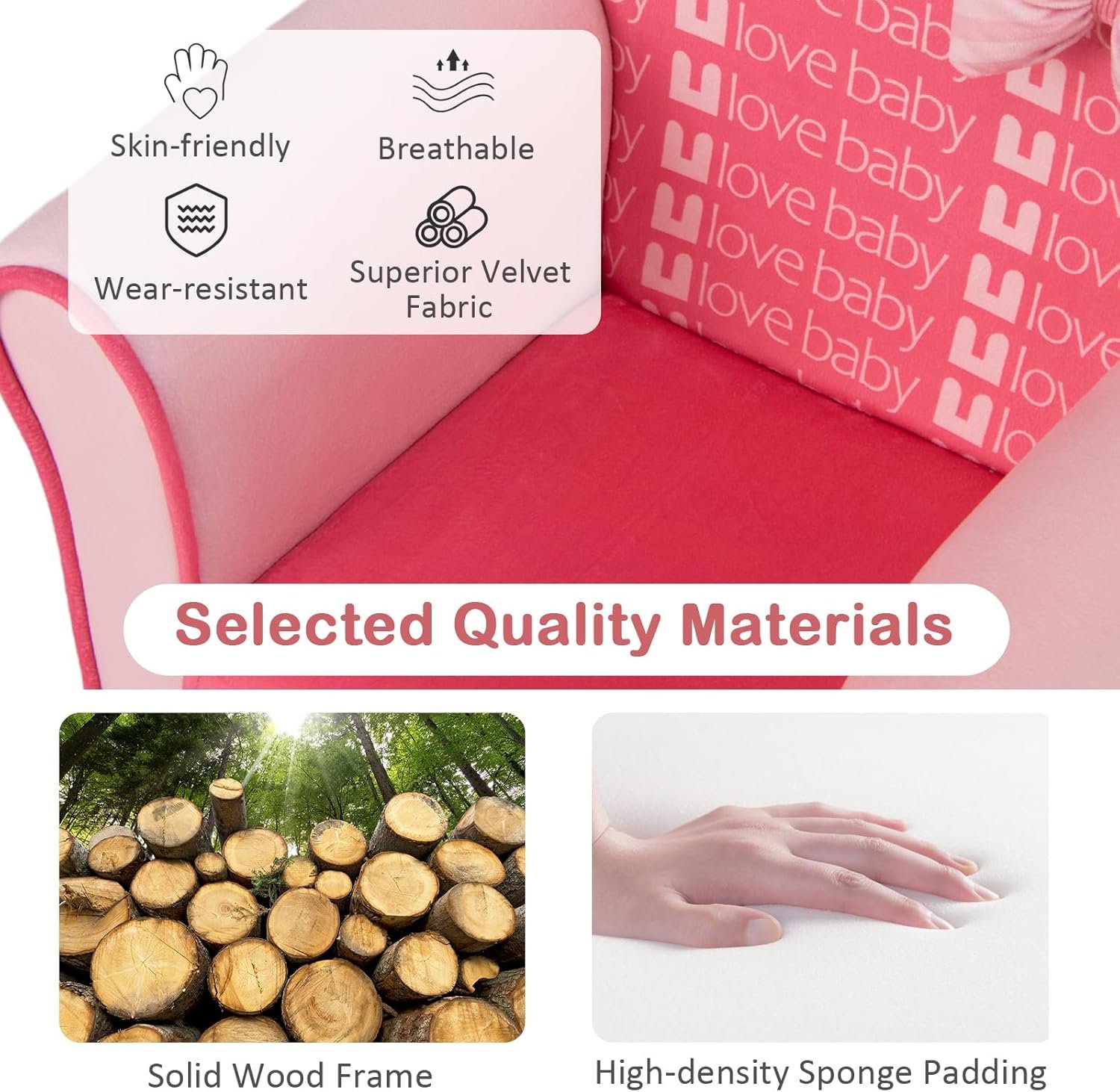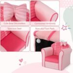 Soft Touch & Cute Bow Decoration: This kids sofa is covered with soft, skin-friendly, breathable, cozy and warm velvet surface to give your toddler a good touch. What’s more, the cute bow on the sofa will immediately attract your little princess’s attention and make her fall in love with this exclusive pink sofa.