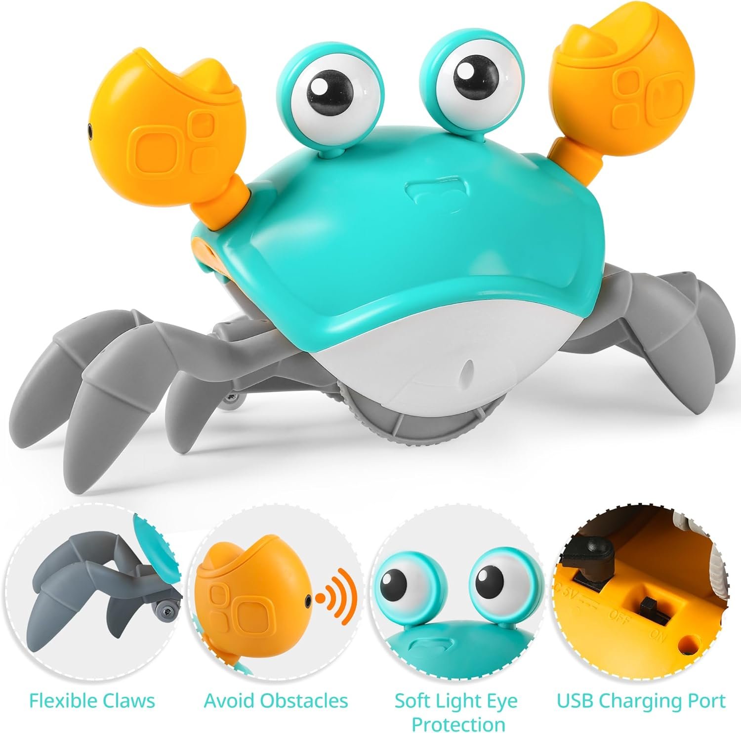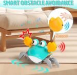SMART SENSING CRAB TOY: The electric crab crawling toys feature an infrared sensing design, when it encounters an obstacle during moving, it will move in the opposite direction in time. The light and music makes it very attractive to kids. Sensor crab toy is best gift for boys girls 0-2 1-2 1-3 2-3 2-4 years old