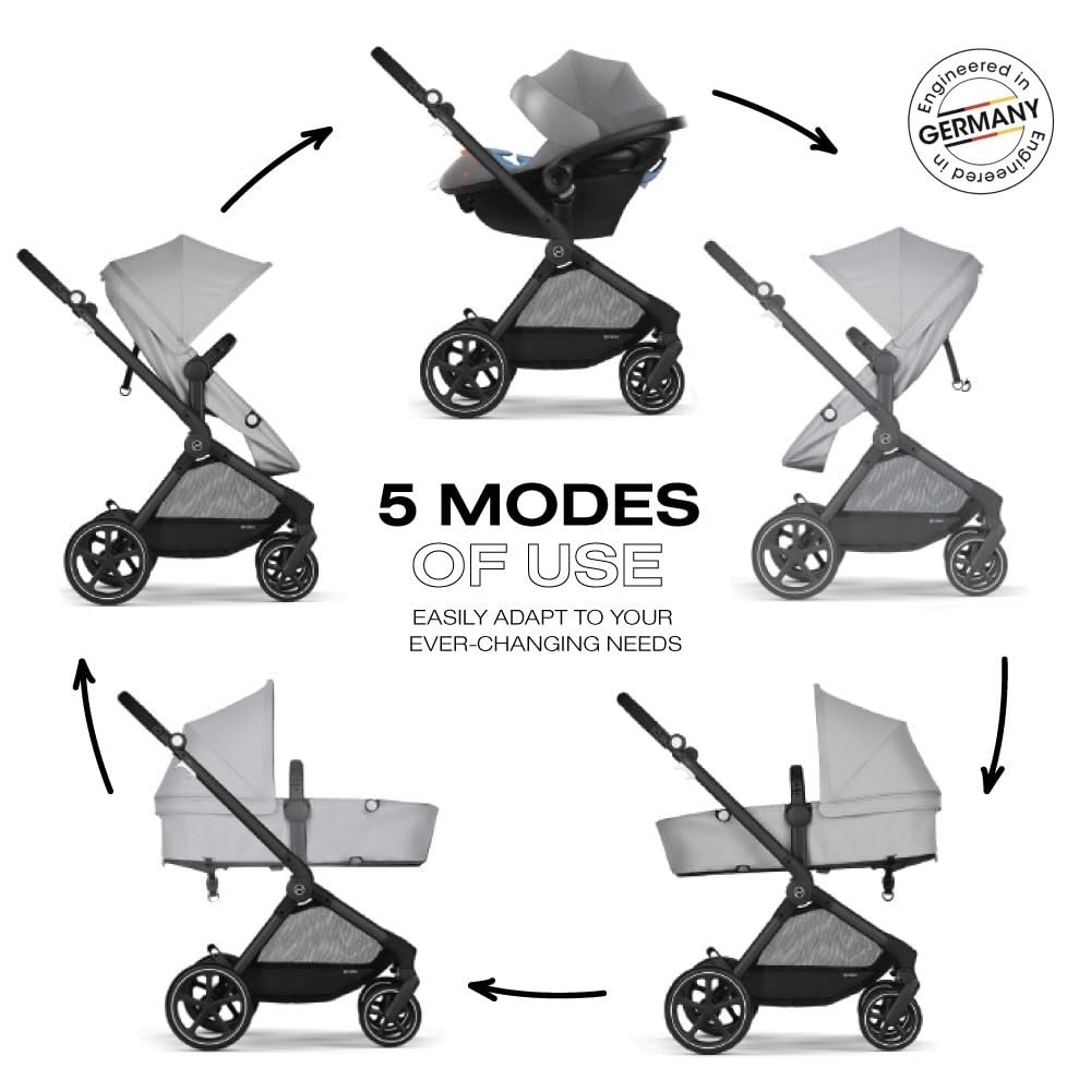 5 MODES OF USE: Easily adapting to your ever-changing needs, the EOS can be configured into five distinct modes: front-facing Carriage Mode, rear-facing Carriage Mode, front-facing Seat Mode, rear-facing Seat Mode, and Travel System Mode when you attach a CYBEX infant car seat.