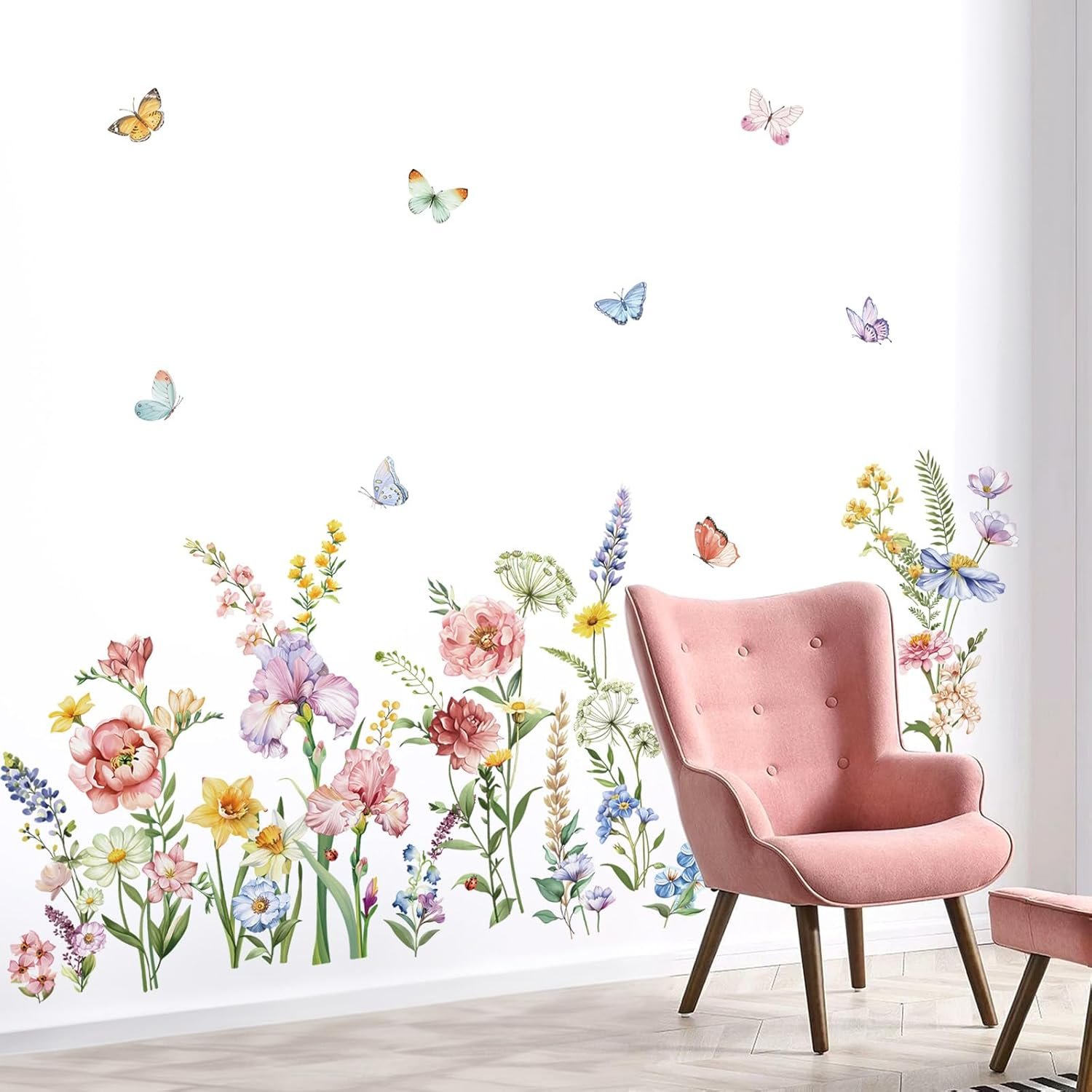 decalmile botanical wildflower wall decals are perfect to decorate girls bedroom, living room, classroom, TV wall.
