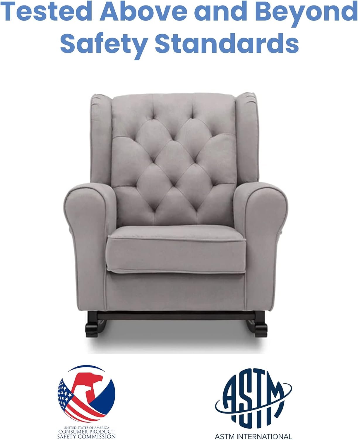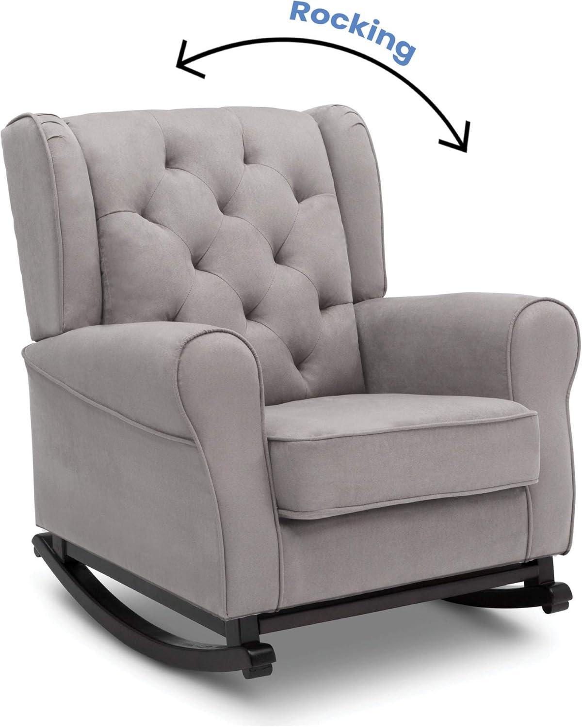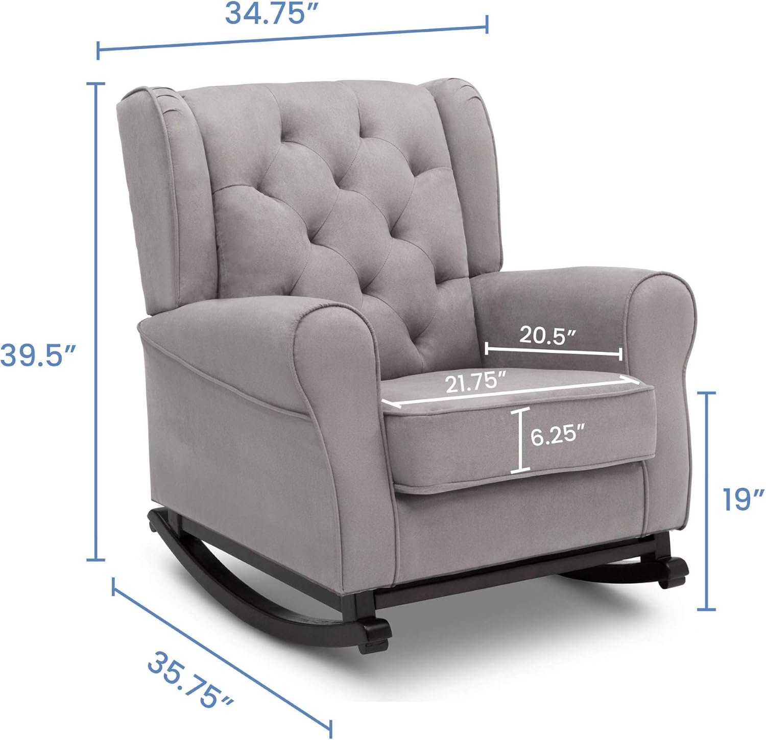 No nursery is complete without a plush rocking chair, and the Emma Nursery Rocking Chair from Delta Children is the perfect addition to your baby’s space. Crafted to comfort tired babies and parents, this chair features a thickly padded seat cushion and armrests, plus it sits above wood rocker feet that create a smooth swaying motion. Its classic wingback silhouette, tufted accents, microfiber upholstery and dark chocolate finish on the wood feet allow for it feel right at home in a nursery, living room or any shared space that needs a cozy spot. Delta Children was founded around the idea of making safe, high-quality children’s furniture affordable for all families. They know there’s nothing more important than safety when it comes your child’s space. That’s why all Delta Children products are built with long-lasing materials to ensure they stand up to years of jumping and playing. Plus, they are rigorously tested to meet or exceed all industry safety standards.