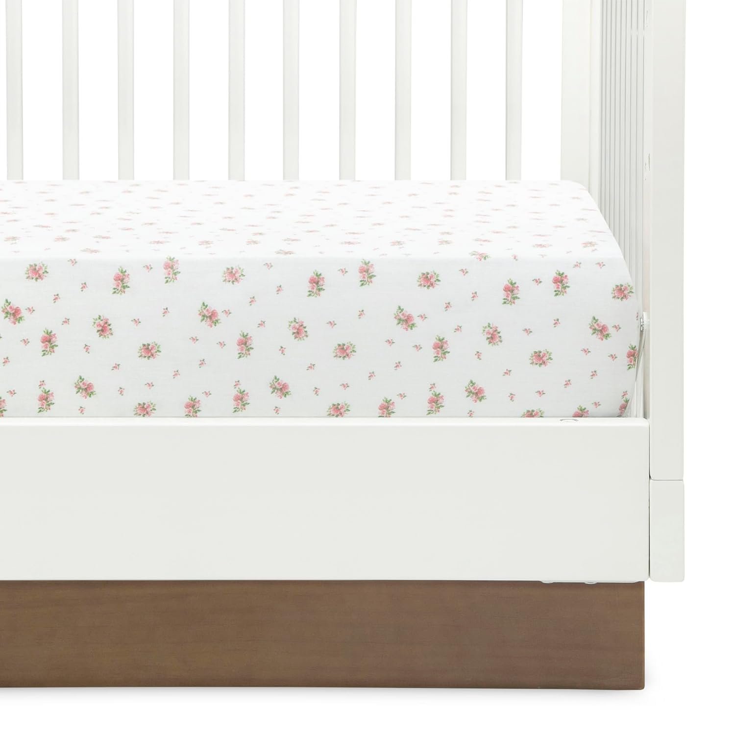 Sweet dreams are made of these Delta Children Fitted Crib Sheets! Made from a soft woven blend, these cozy crib sheets will be your baby’s favorite. Gentle against baby’s delicate skin, this set includes two fitted crib sheets to ensure you always have a spare on hand. Elastic edges around all four sides ensure a safe and snug fit that won’t shift as your baby sleeps or naps. Available in several easy-to-coordinate prints, you’ll find a set that goes with any décor.