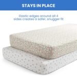 STAYS IN PLACE: Elastic edges around all 4 sides creates a safer, snugger fit | Crib sheet does not slip/shift when sleeping or napping