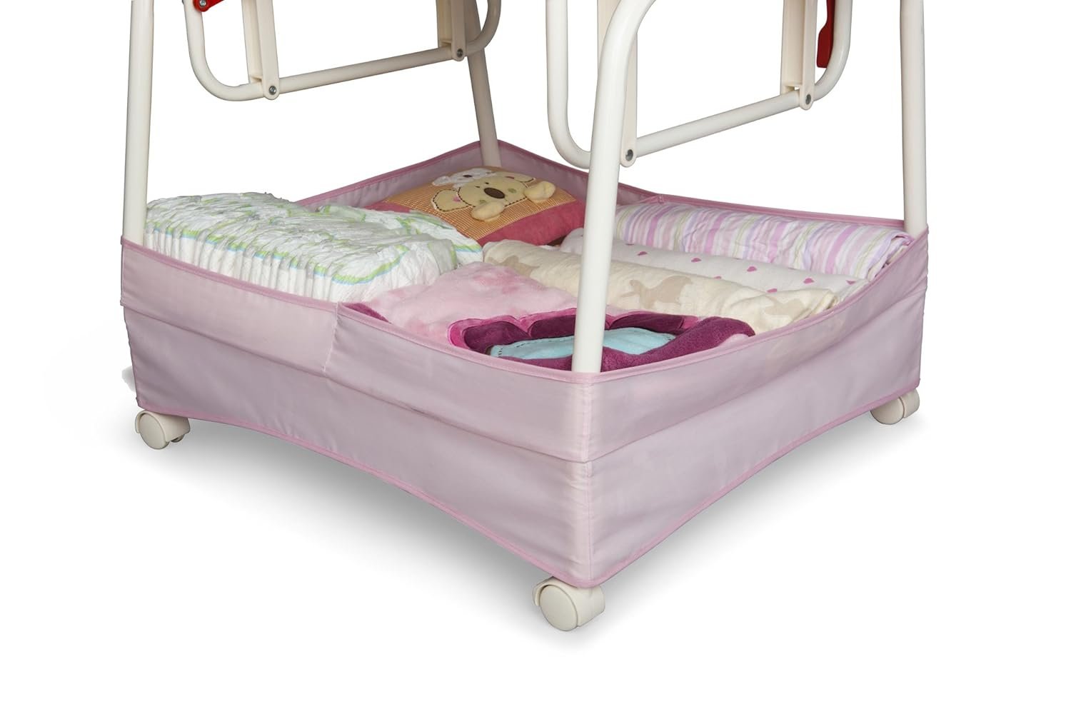 Large storage basket provides ample storage for all things baby; Adjustable, removable canopy blocks light