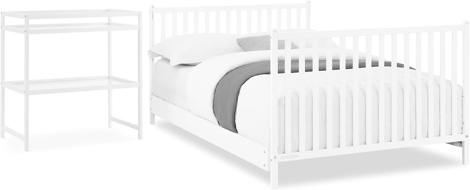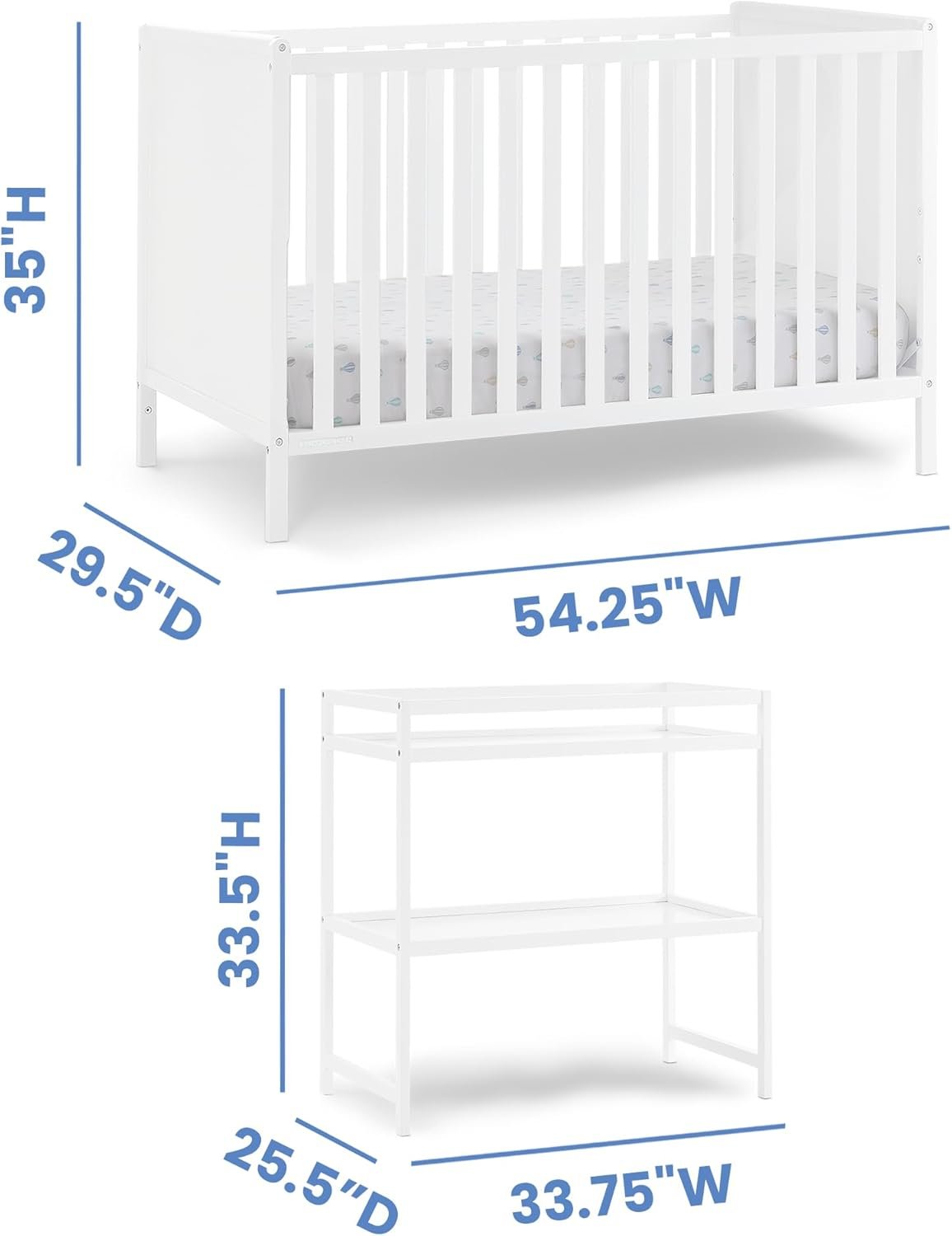 2-PIECE NURSERY SET: This versatile set includes everything you need to create your dream nursery, a convertible baby crib and matching changing table | Uses a standard size crib mattress (sold separately) | To ensure the perfect fit pair your crib with a Delta Children, Serta, Beautyrest or Simmons Kids crib mattress | Recommended Changing Pad Size 32.25″W x 16.5″D x 1″H (sold separately)