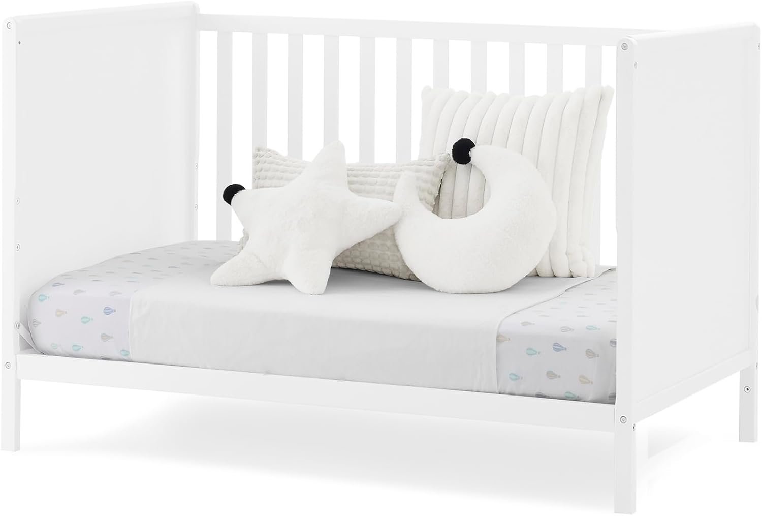 Bring your dream nursery to life with the Ruby 6-in-1 Convertible Crib & Changing Table 2-Piece Set by Delta Children. With its clean, modern, and timeless design, the Ruby is the perfect addition to any nursery, and easy to match with any style. Crafted to last, the crib features three mattress heights, and converts into a toddler bed, daybed, sofa or full size bed with and without footboard (Daybed/Sofa/Toddler Guardrail Kit #W200725 and Full Size Wood Bed Rails #0050 sold separately). The matching changing table features a classic silhouette and tons of storage with an open shelf that allows you to keep toiletries or clothing within reach. Plus, this 2-piece nursery furniture set is GREENGUARD Gold Certified, which means it’s built to contribute to cleaner air for a healthy home. Crib mattress and changing pad sold separately.