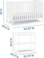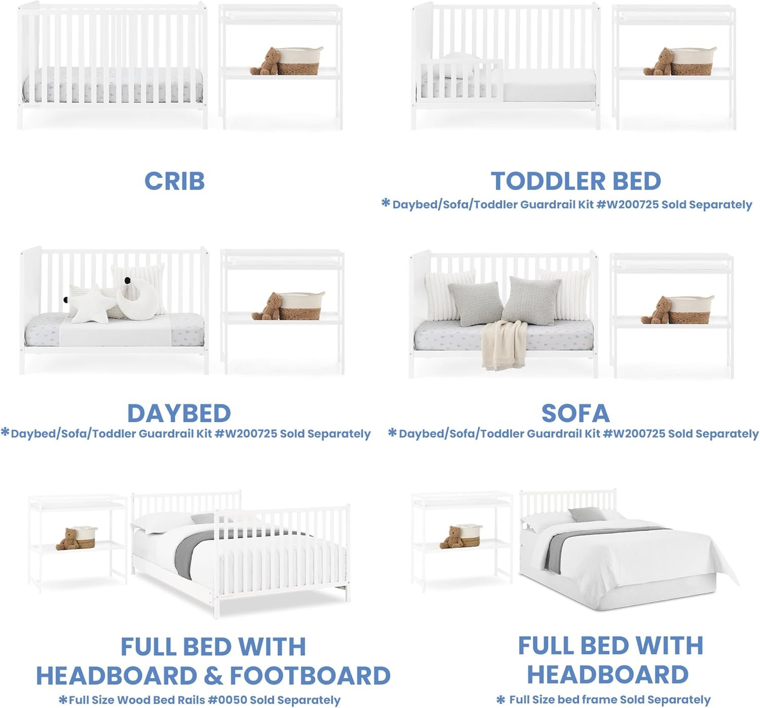 6-IN-1 CONVERTIBLE CRIB: Crib converts to toddler bed, daybed, sofa, full size bed with headboard & footboard and full size bed with headboard only| Daybed/Sofa/Toddler Guardrail Kit #W200725 sold Separately | Full Size Wood Bed Rails #0050 for headboard & footboard conversion and standard bed frame for headboard only conversion, sold separately | Crib Assembled Dimensions: 54.25″W x 29.5″D x 35″H | Changing Table Assembled Dimensions: 33.75″W x 18.5″D x 33.5″H