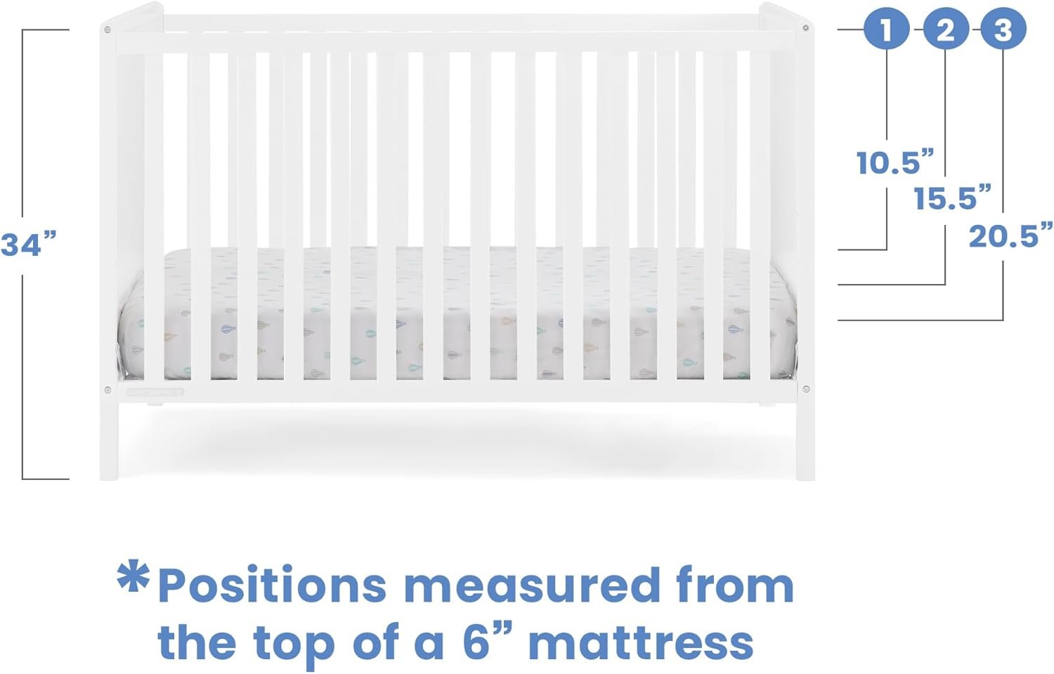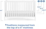 ADJUSTABLE HEIGHT: Adjustable height mattress support with 3 convenient positions on the crib, to grow with your baby | CRIB ACCESS RAIL HEIGHTS: From Floor: 34″; From Top Mattress Support Position: 16.50″; From Bottom Mattress Support Position: 26.50″