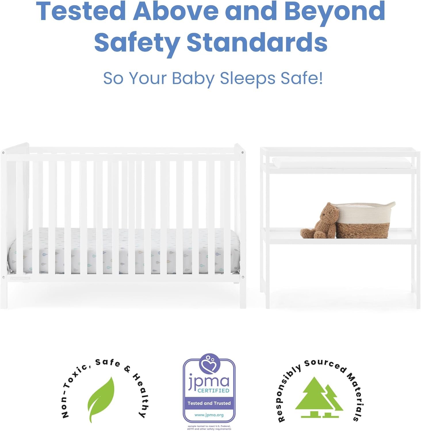 SAFE OPTION FOR YOUR BABY: This crib and changing table are JPMA certified to meet or exceed all safety standards set by the CPSC & ASTM | We know chemicals have no place in your nursery, so we use a non-toxic multi-step painting process that is lead and phthalate safe