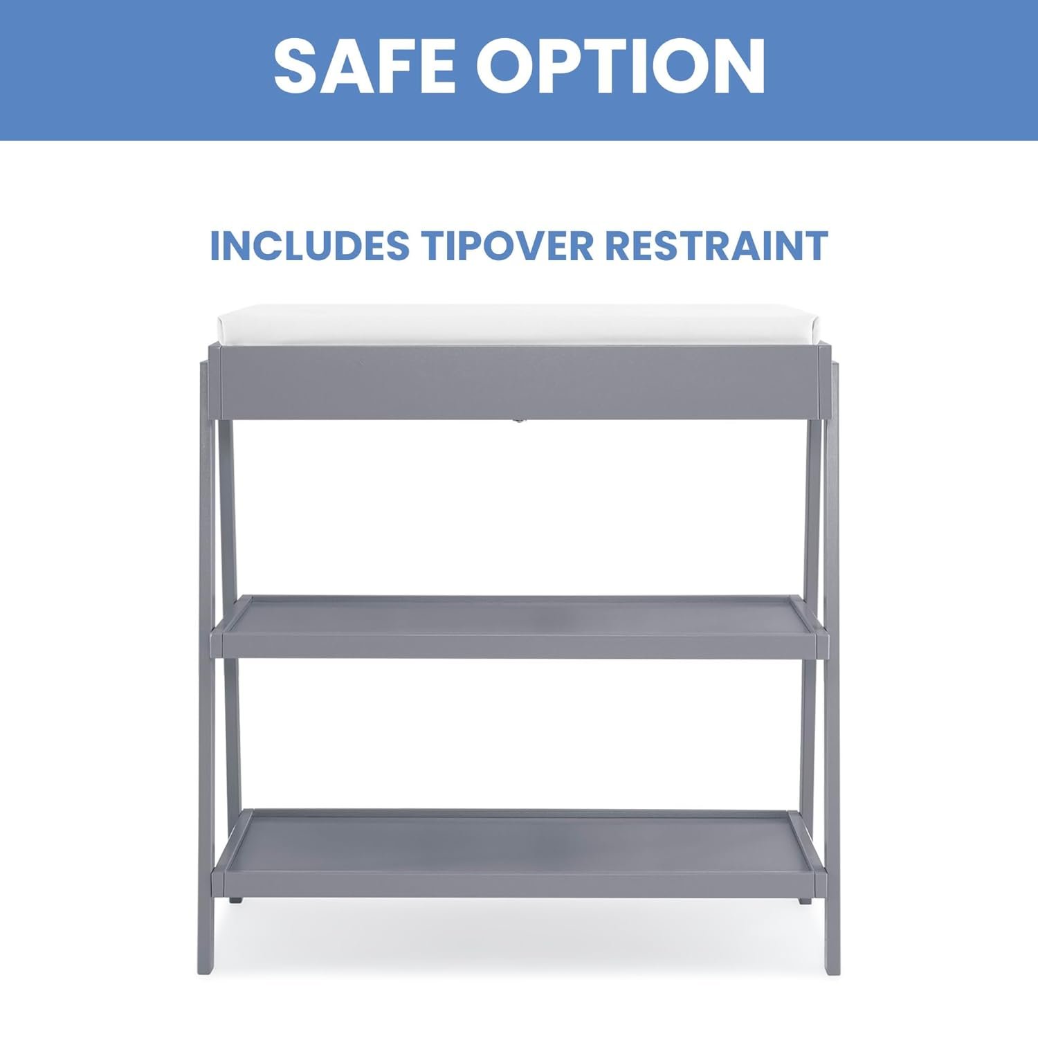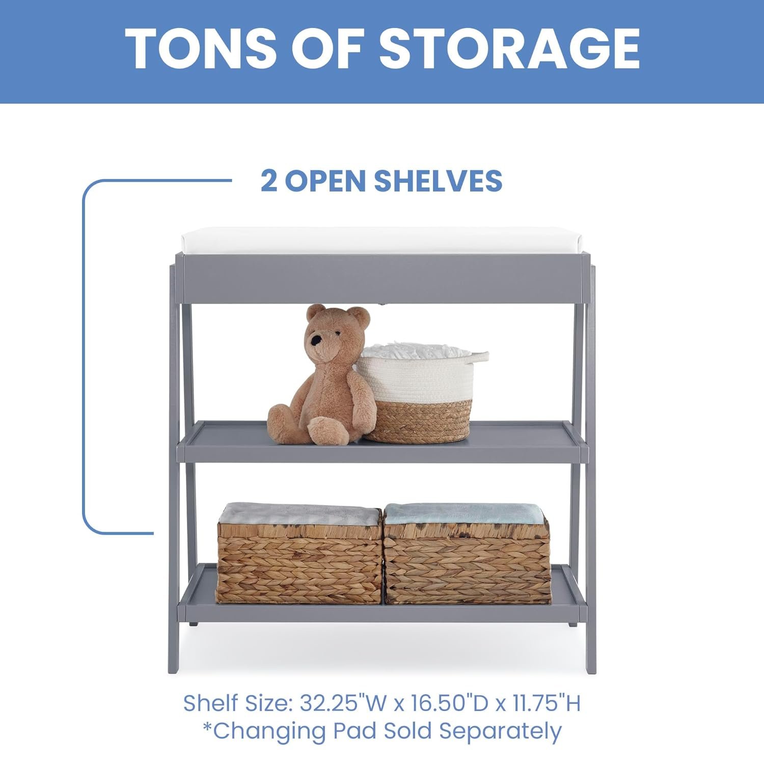 VERSATILE STORAGE: This changing table features 2 shelves to keep baby changing needs close by | Changing Pad sold separately | To ensure safety and the perfect fit, pair your changing table with a Serta, Beautyrest or Simmons Kids contour pad