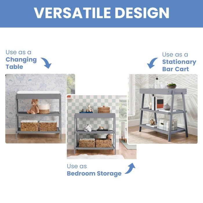 SIZE: Assembled dimensions: 35.25″W x 18.75″D x 34.7″H; Shelf Size: 32.25″W x 16.50″D with 11.75″ between shelves | Accepts changing pad size 32″W x 16″D x 1″H (sold separately) | Easy assembly
