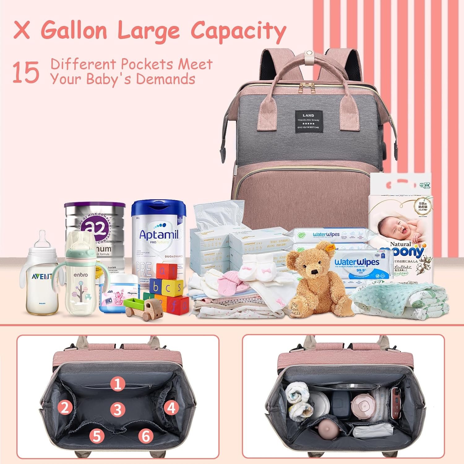 【Versatile Diaper Changing Hub】: Our diaper bag goes beyond storage, offering a pristine, hygienic changing station for your little one. Whether it’s time for a diaper switch or a cozy nap under the sun, the built-in soft pad and pillow ensure comfort, while the shading cloth safeguards your baby’s delicate eyes — a haven for both baby boy and baby girl.