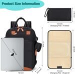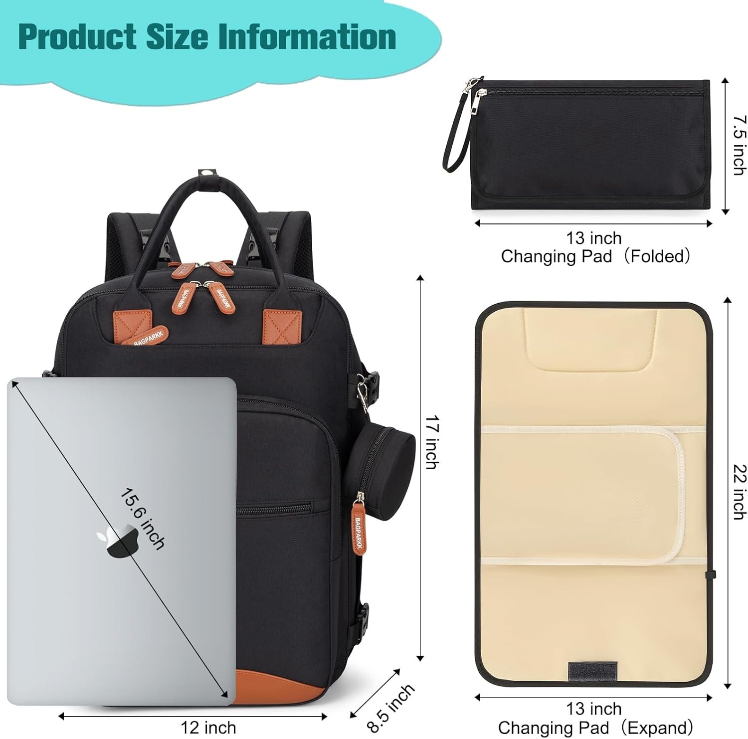 Large Capacity&All-in-One Design:A spacious enough diaper backpack (size: 12″x8.5″x17″), an easy wipe-clean foldable changing mat (size: 22″x13″), stroller straps,a detachable pacifier case , and 2 insulated pockets. A separate waterproof section for dirty/wet clothes & diapers, main compartment with plenty of space to store all your baby stuff