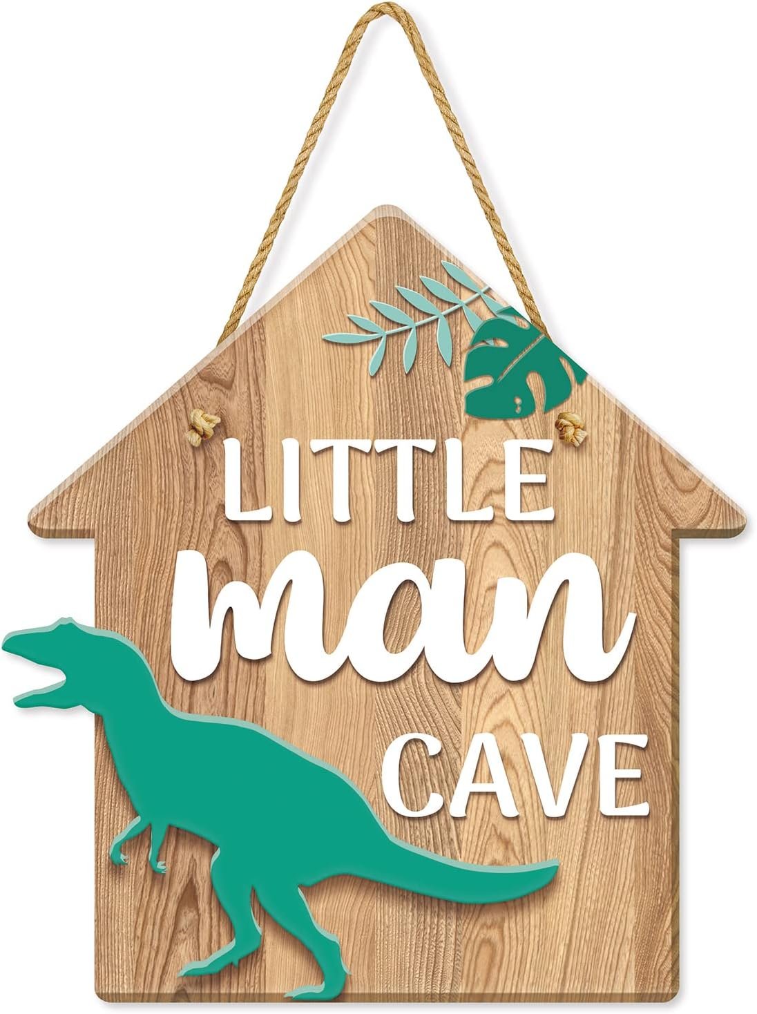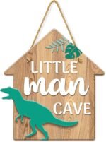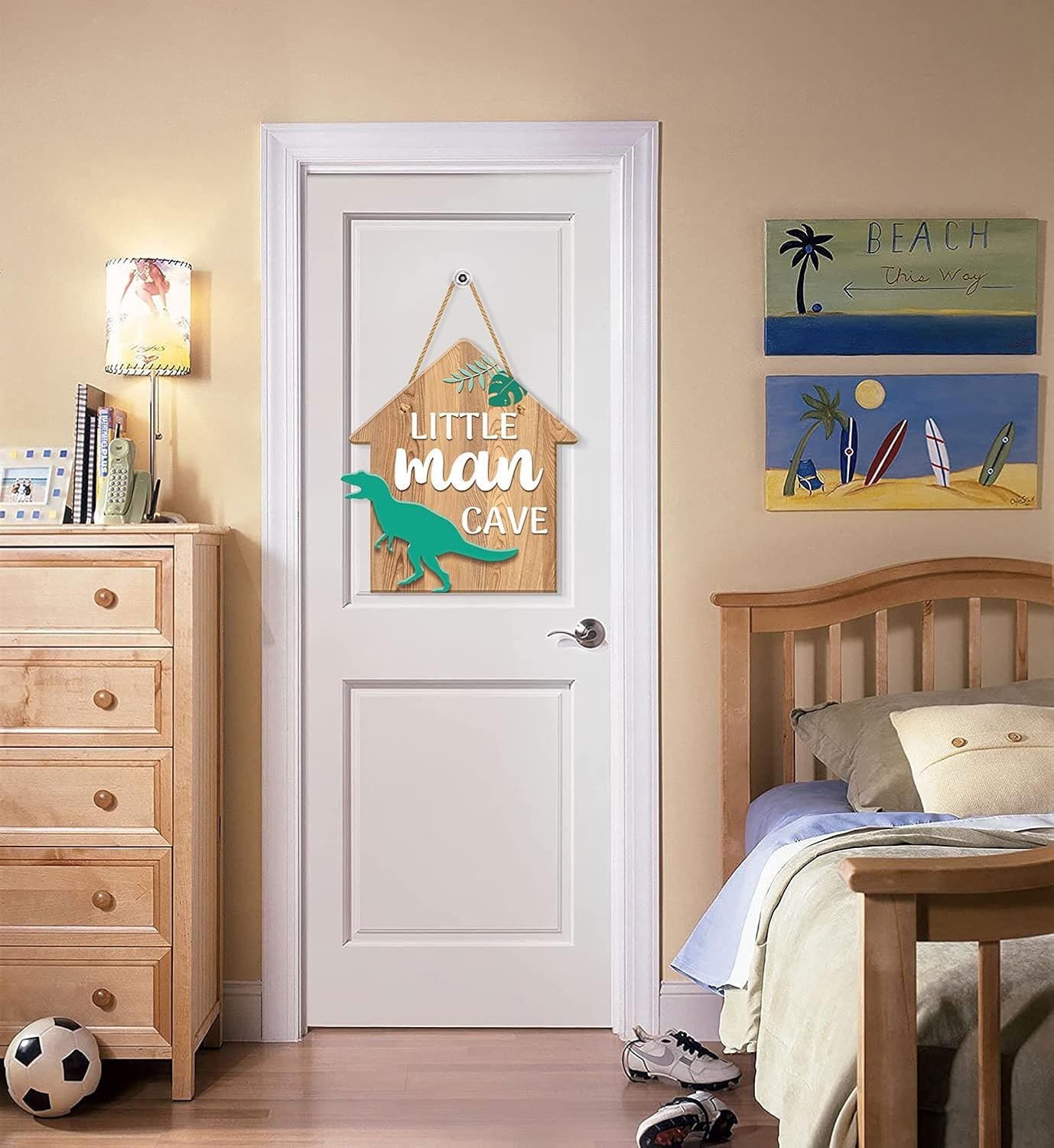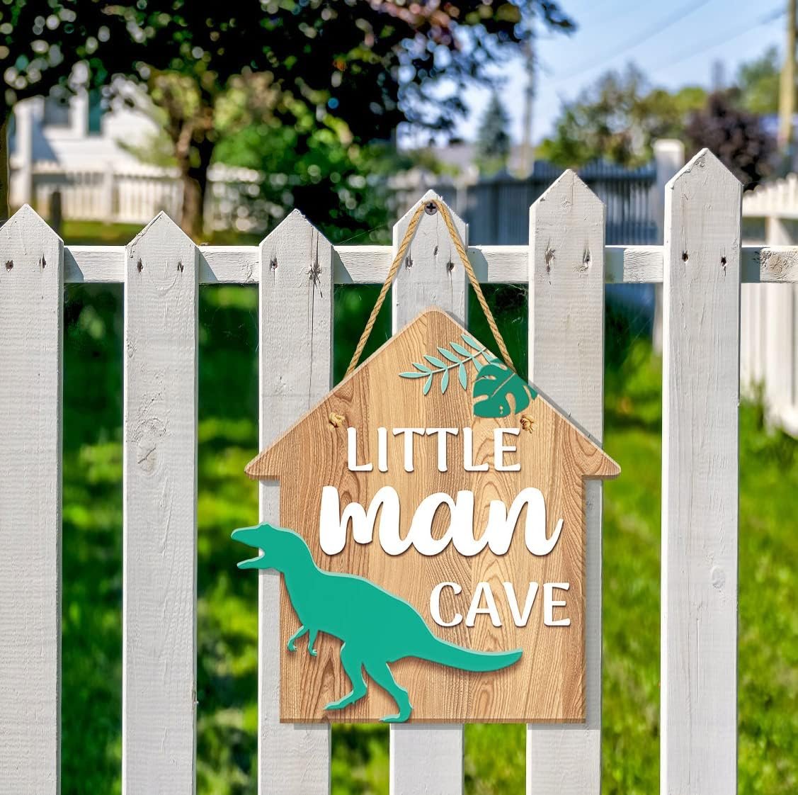 ✦Super Cute Dinosaur Design: Our dinosaur signs are watercolor style designed printed with LITTLE MAN CAVE saying and a cyan-blue dinosaur. A cute dinosaur sign decorate your boys magic dream space