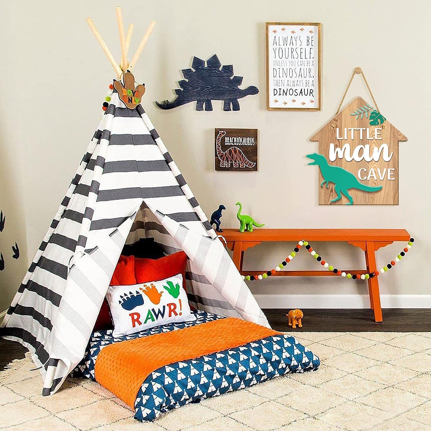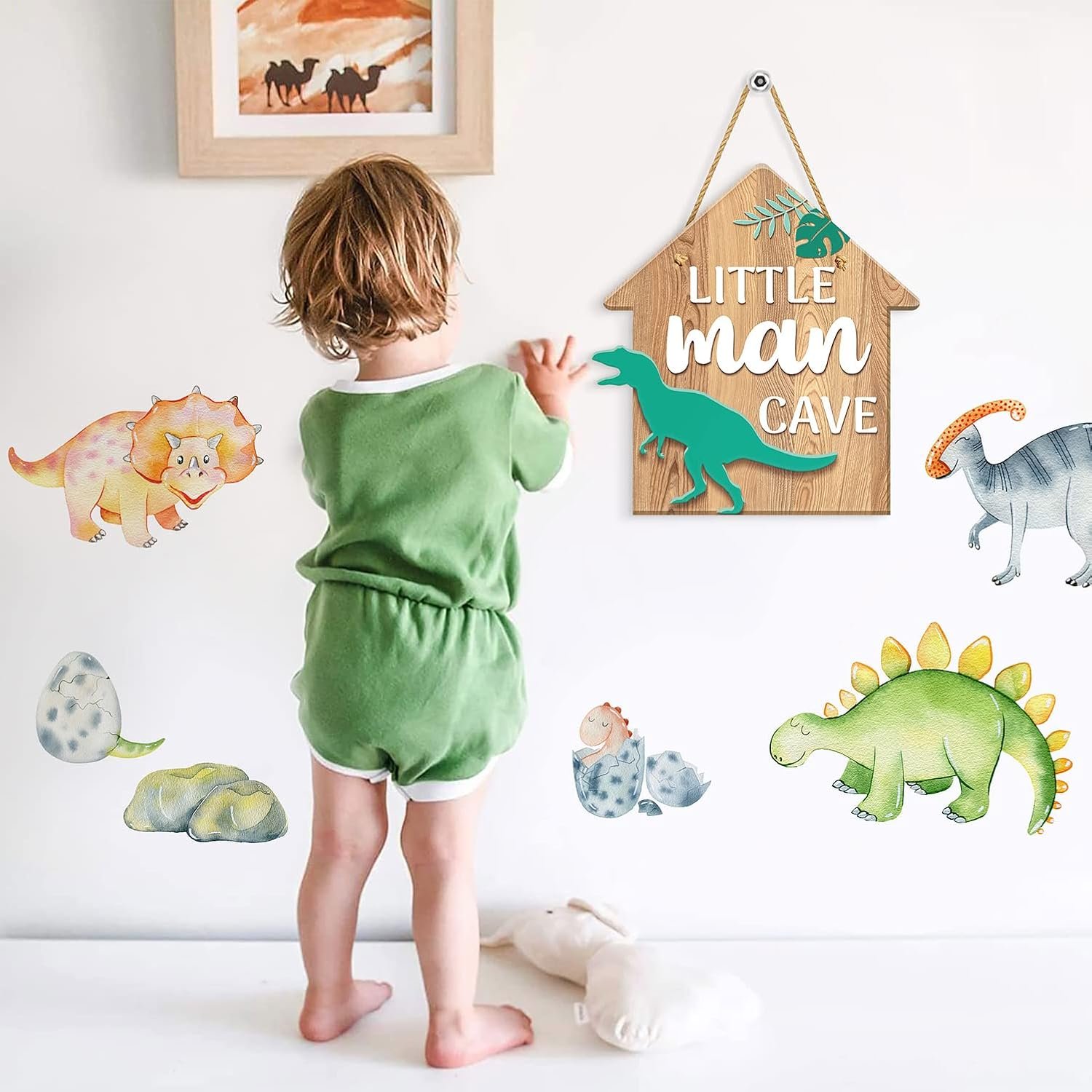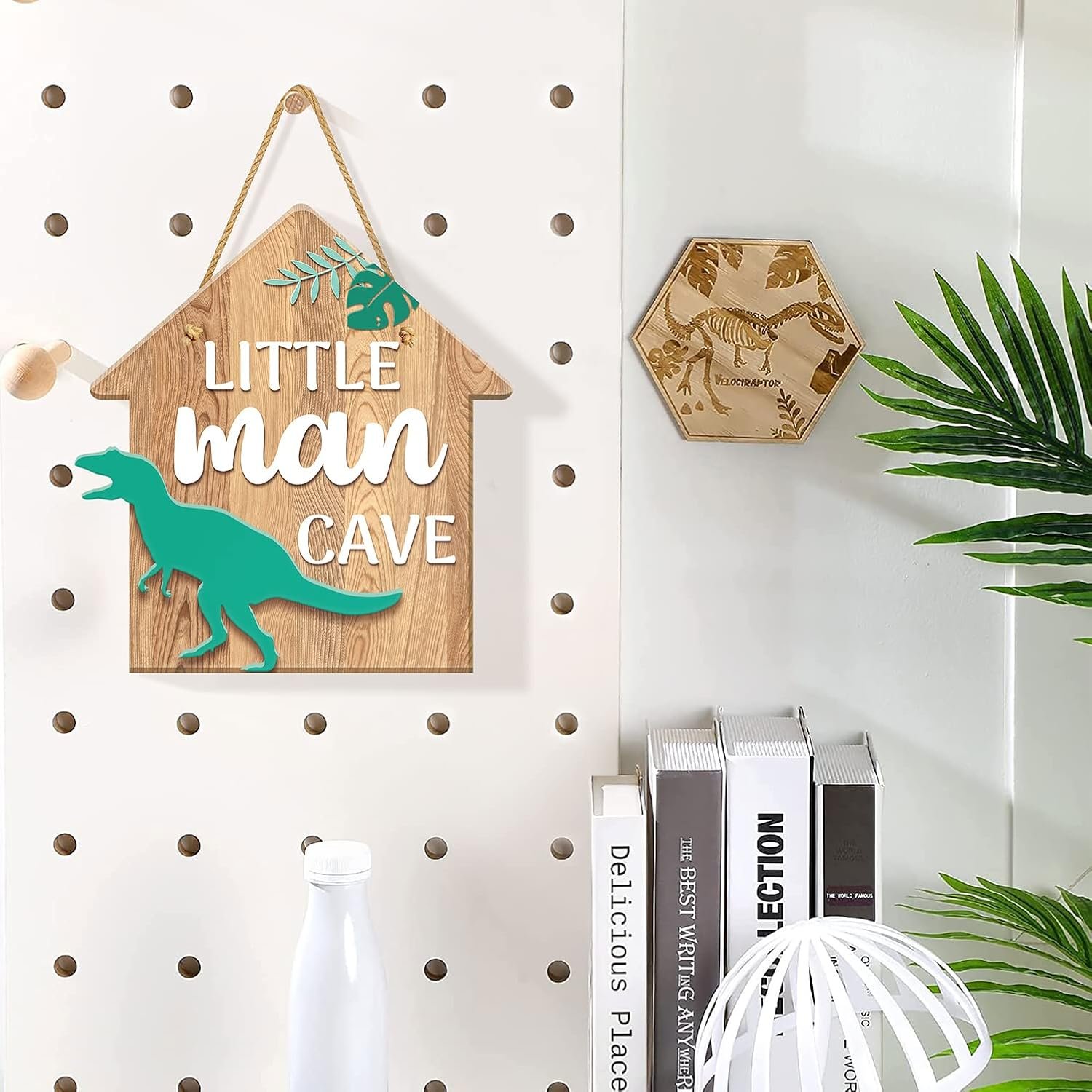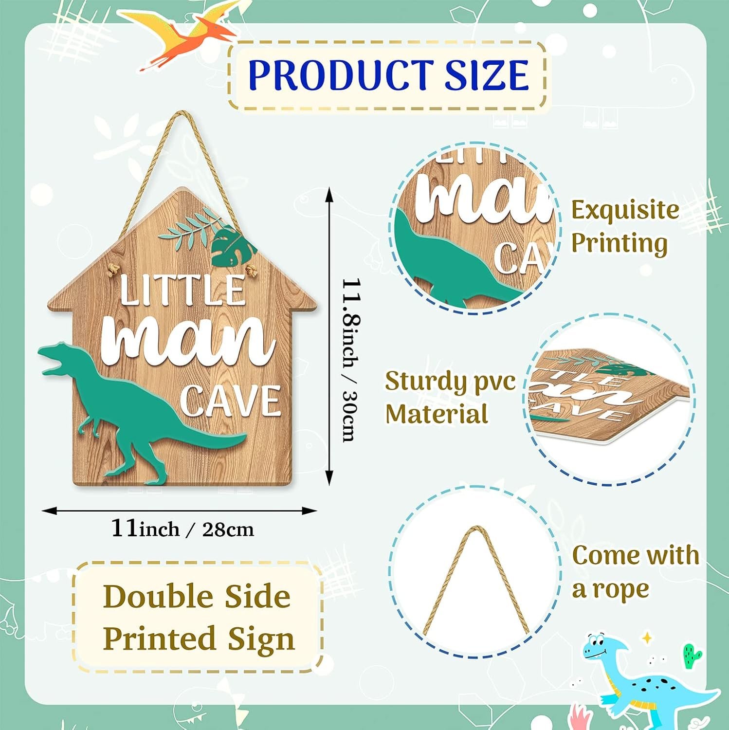 ✦Super Cute Dinosaur Design: Our dinosaur signs are watercolor style designed printed with LITTLE MAN CAVE saying and a cyan-blue dinosaur. A cute dinosaur sign decorate your boys magic dream space