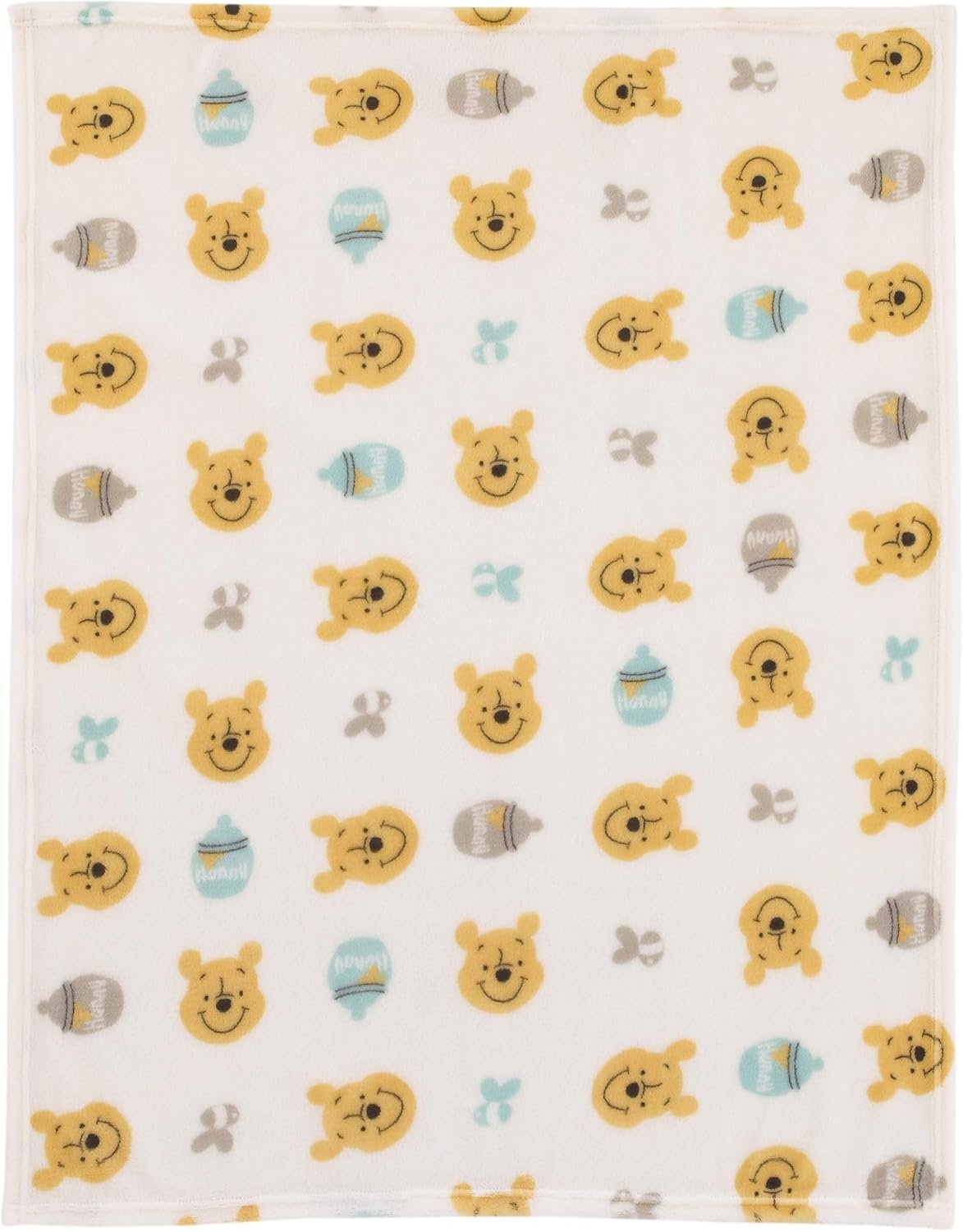 Your little one will love to cuddle up with Disney Baby’s beloved Pooh Bear! An ideal new baby or toddler gift, this super-soft blanket is constructed with a high-quality, French fiber fabric. Pooh’s smiling face adorns the blanket in shades of cool grey, mint and yellow that will easily coordinate with your child’s room. This cute and cuddly Winnie the Pooh blanket measures 30″ x 36″ so it is ideal for any age. Perfect as a room decor item or take with your child when you’re on the go!