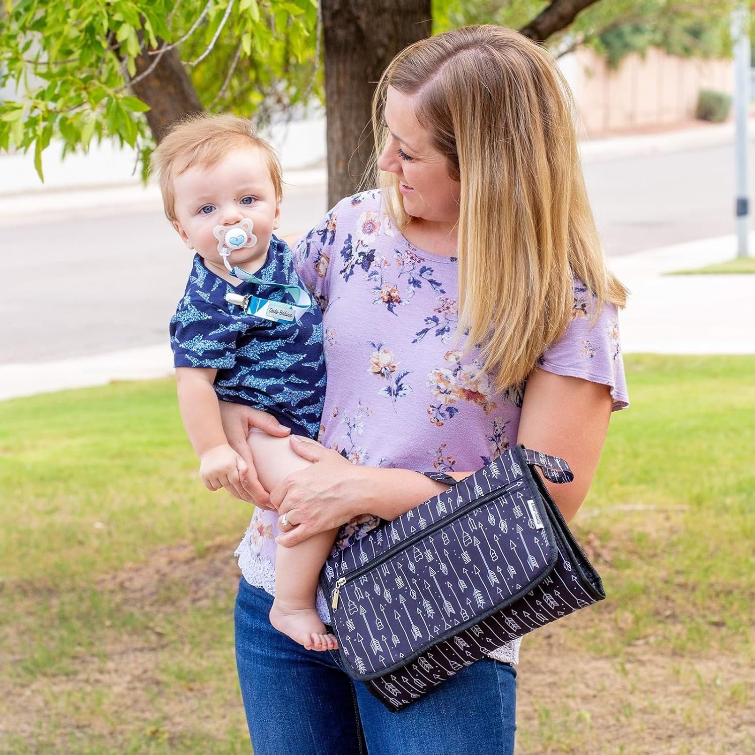 QUICK CHANGE SET FOR MODERN PARENTS: Our smartly-designed changing pad is lightweight, compact, and full of must-have features. Strong hook-and-loop make using the pad easy wherever you go. A memory foam head pillow feature ensures baby is extra comfy. A side zip pocket stores extra diapers, wipes, and other essentials.Set includes two bonus pacifier clips and coordinating binky case