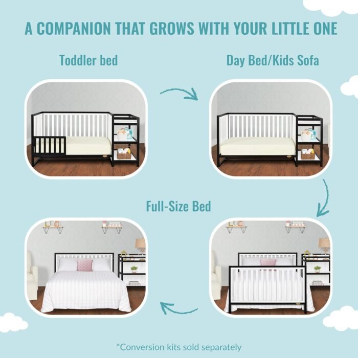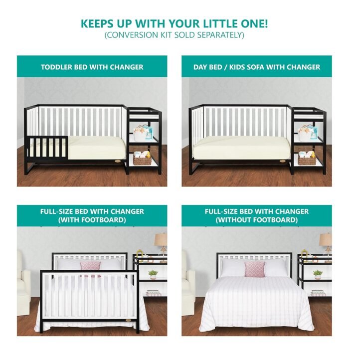 CONVERTIBILITY OPTIONS: Convert it from a crib to a toddler bed, a day bed, and then a full-size bed (full-size bed frame and bed rails sold separately). It features a convenient 3-height mattress setting to grow with your baby.