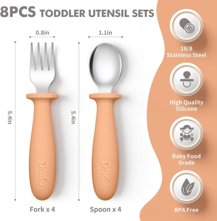 BABY FOOD-GRADE MATERIAL: Crafted from higher quality 18/8 stainless steel and silicone, free from harmful chemicals like BPA, PVC, and phthalates. Reliable quality ensures these utensils are dishwasher-safe for easy cleaning, ensuring enjoyable meals while saving time and effort.