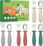 DELIGHT IN SELF-FEEDING: This 8 piece toddler utensil set comes in 4 bright colors, tailored for small hands. Comfortable-grip spoons and forks make meal an independent act of joy. The engaging colors stir excitement and curiosity to promote self-feeding